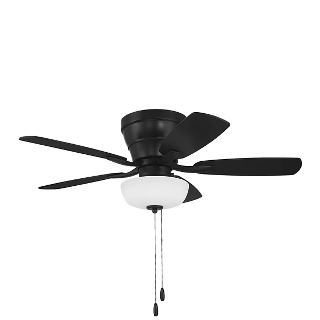 An elegant source of cooling air and warming light. Excellent anywhere from living rooms to bedrooms, the Darius LED Ceiling Fan from Alder & Ore is a piece about comfort. It provides visual comfort and a contemporary design with a minimalist sensibility. The piece slots on the ceiling in a flush or elongated composition. At the core is a powerful 3-speed engine that functions at a whisper. Tug on the pull-chain to see the group of elegant blades gliding across the air. The whirling movement leaves you with a refreshing gust. The other pull-chain takes control of the charming light. Light mellows through a glass dome to give you a relaxed ambiance.