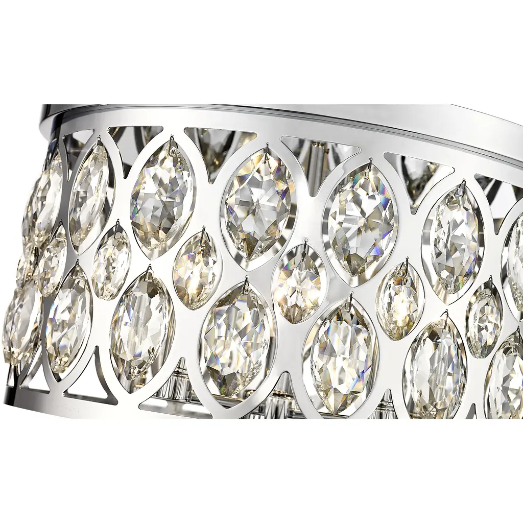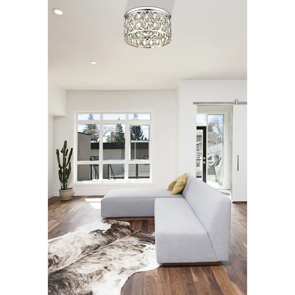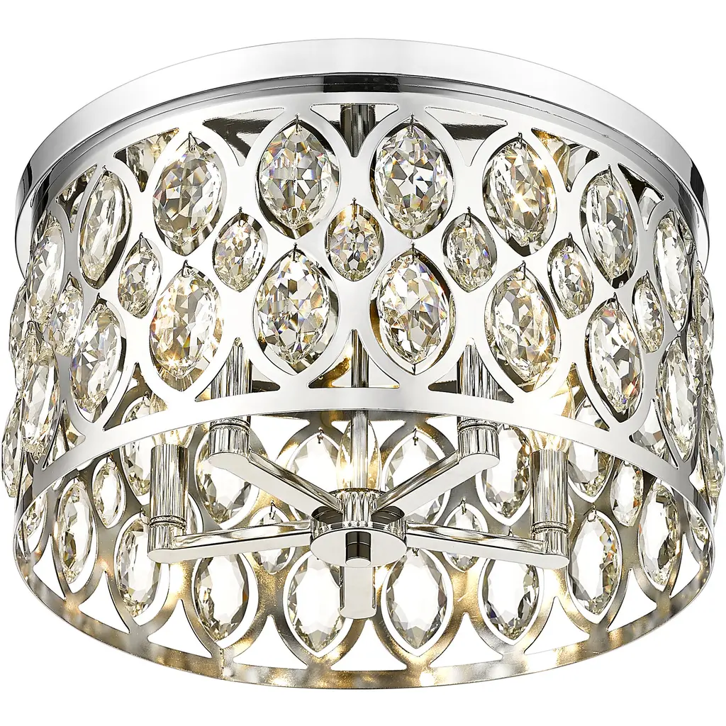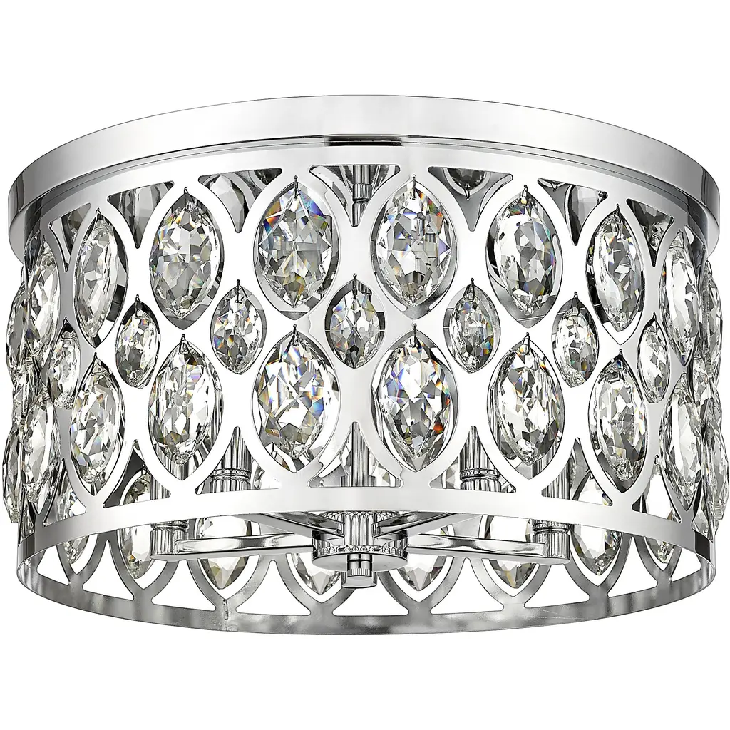Decadence and glam flavor bring an unforgettable ambiance to this five-mount flush mount ceiling light. An extraordinary selection from the Dealey collection, this chic fixture is reserved for the most impactful of living spaces, adding the stunning look of crystal elements to an openwork metal frame with a chrome finish. Five lights infuse suitable ambient lighting for a kitchen, dining room, or foyer, capturing the palatial feel of a classic.