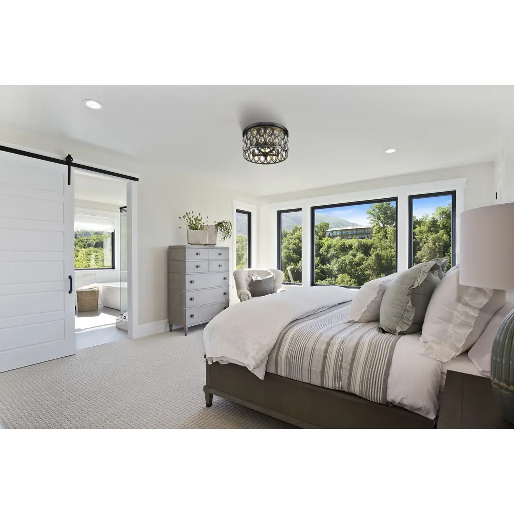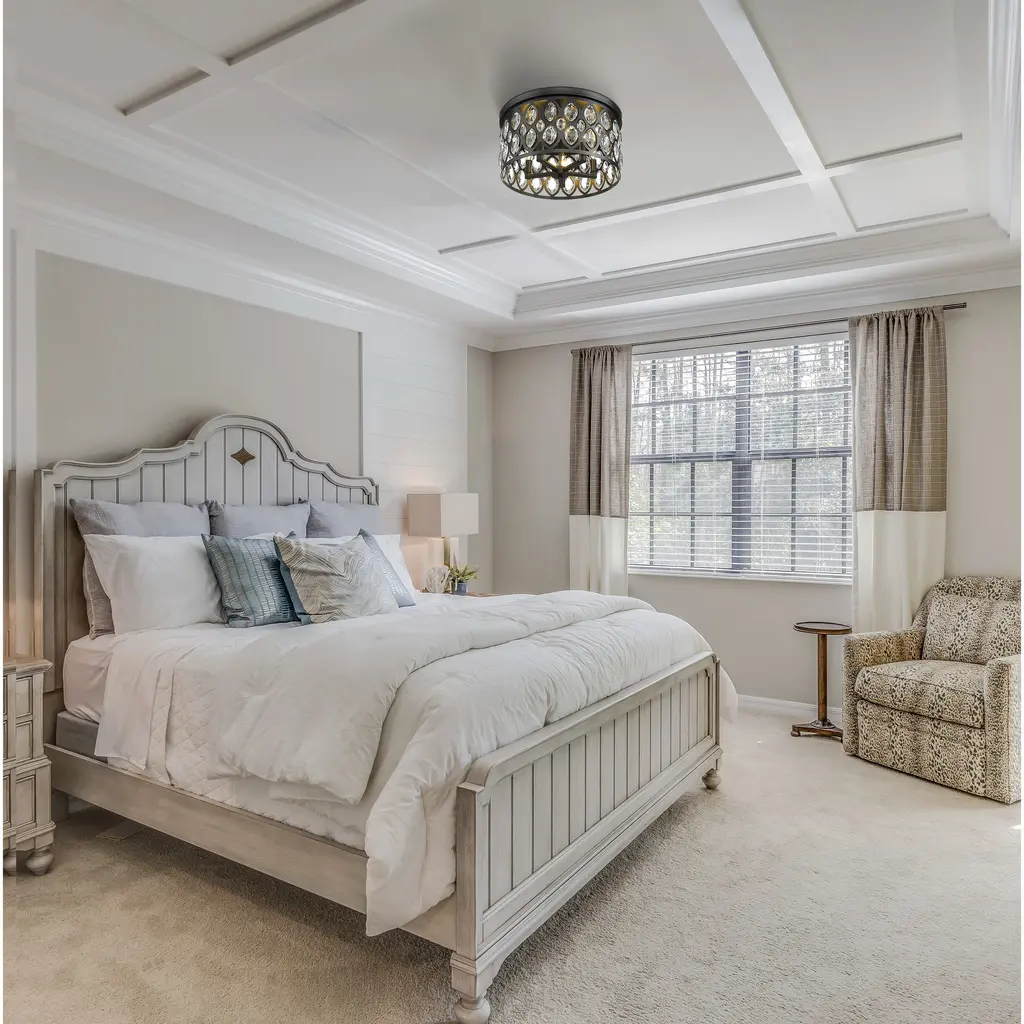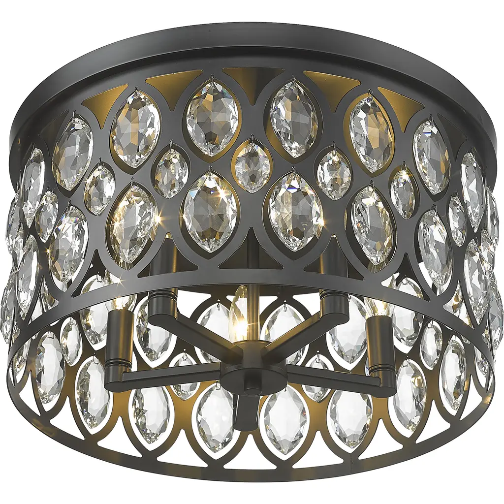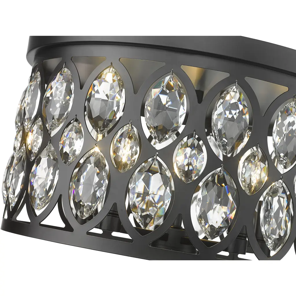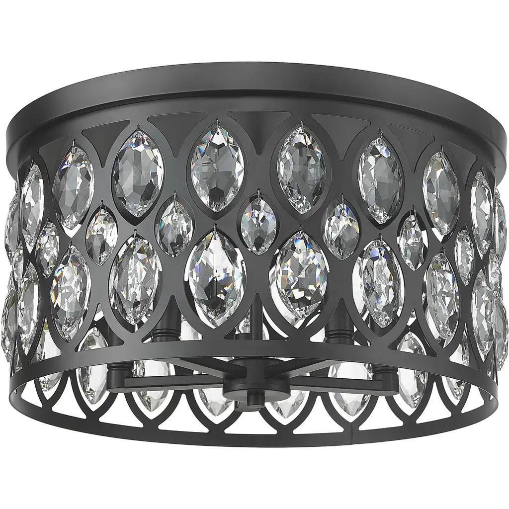 Choose a dramatic aesthetic infused with high-level glam as you light up a traditional space in style. An extraordinary selection from the Dealey collection, this chic five-light flush mount ceiling light is reserved for the most impactful of living spaces, adding the stunning look of crystal elements to an openwork metal frame with a smooth matte black finish. Five lights emit suitable ambient lighting for a kitchen, dining room, or foyer, capturing the palatial feel of a classic.