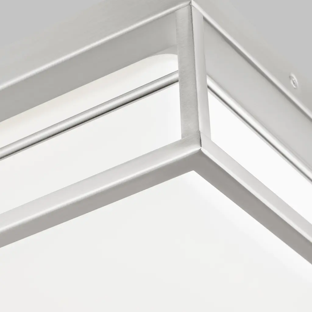 The Dearborn one light flush mount fixture in brushed nickel silver is a universal flush mount, with contemporary angles and open cage frame. Minimalism and elegant design, the simple geometric shape with the metal frame and LED lamping, suitable for kinds of decoration: modern, mid-century, rustic or industrial.