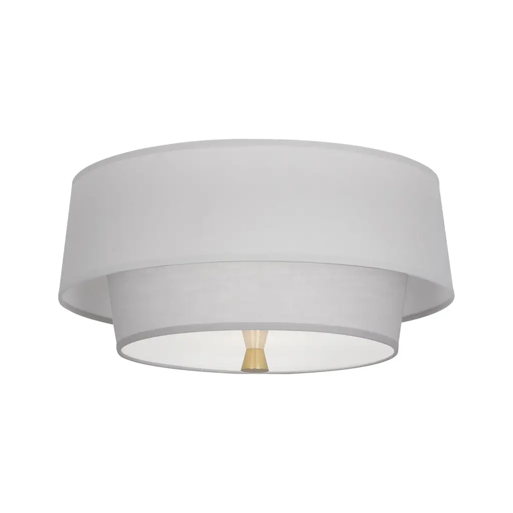 The Decker Flush Mount from Robert Abbey features a refined two-tier design with hardback fabric shades that soften light and reduce glare. Its sleek disc diffuser, secured by a flared metal finial, complements the outer shades while casting a warm, elegant glow. This self-contained fixture brings sophisticated style and gentle illumination to any hallway or room. Highlights