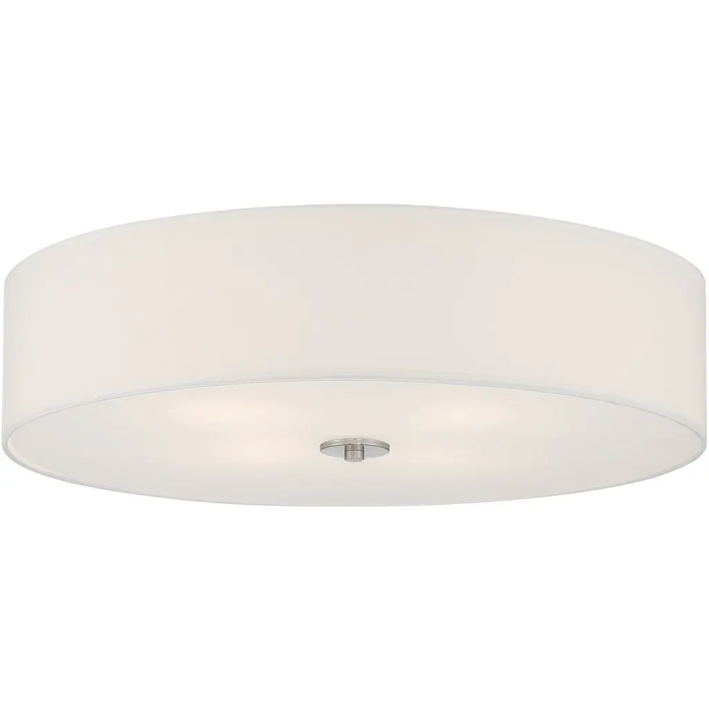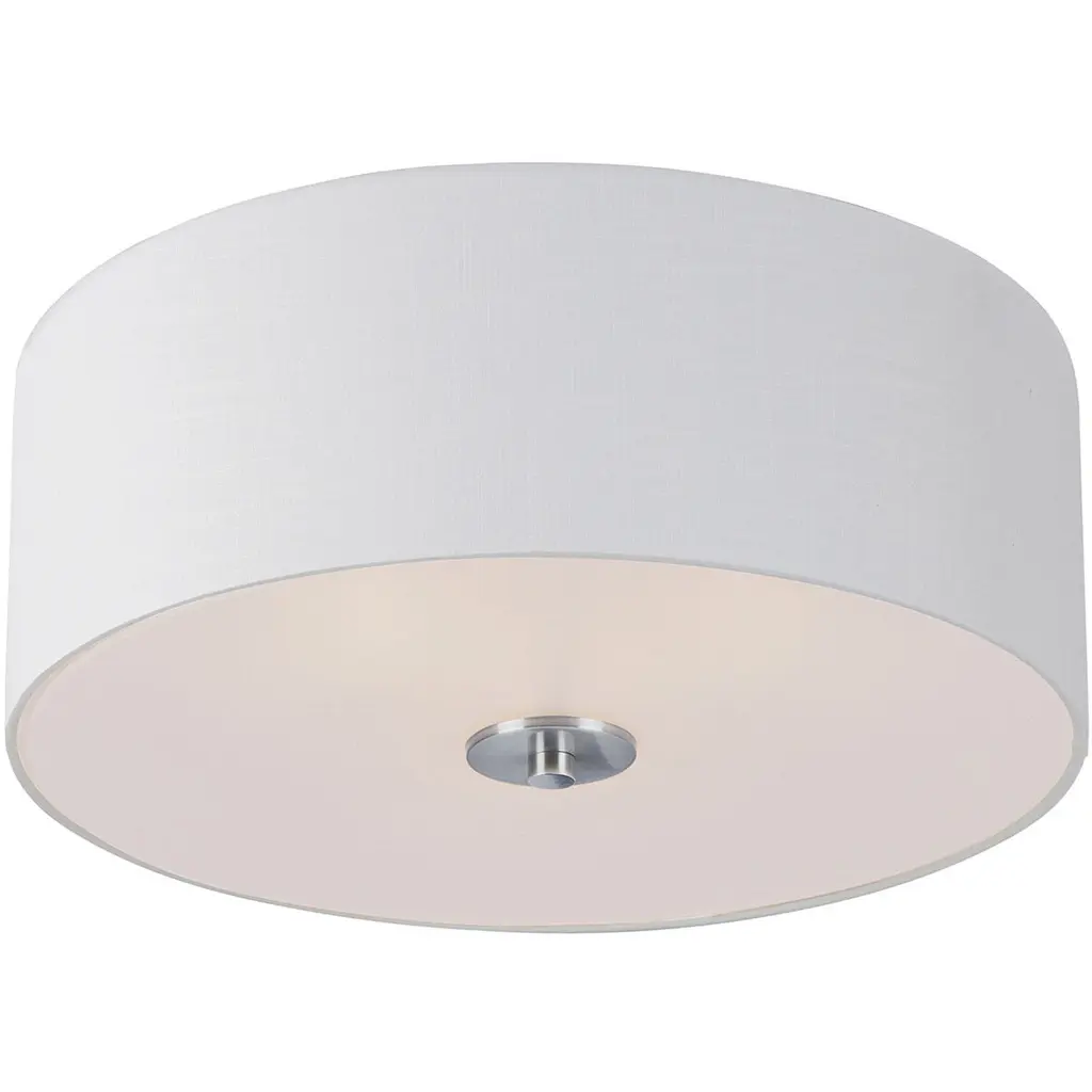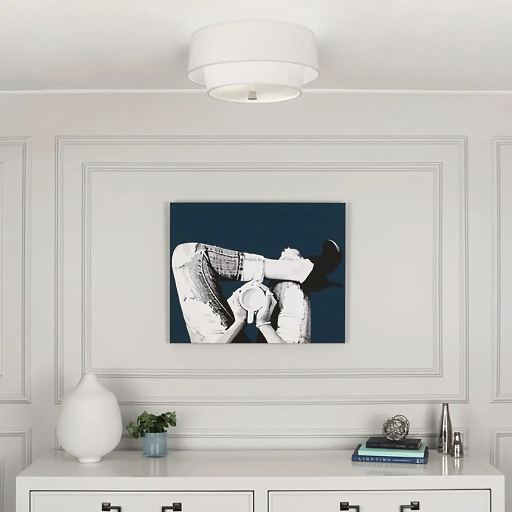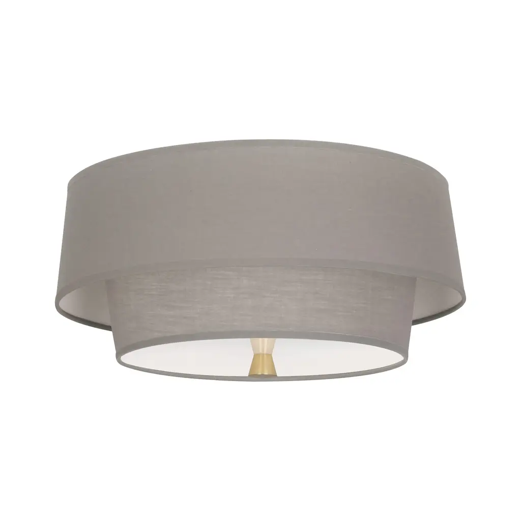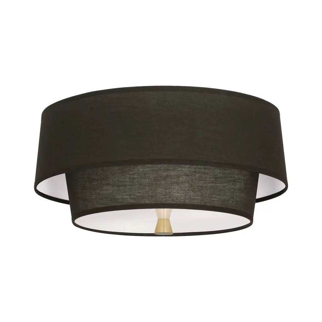 The Decker Flush Mount from Robert Abbey features a refined two-tier design with hardback fabric shades that soften light and reduce glare. Its sleek disc diffuser, secured by a flared metal finial, complements the outer shades while casting a warm, elegant glow. This self-contained fixture brings sophisticated style and gentle illumination to any hallway or room. Highlights