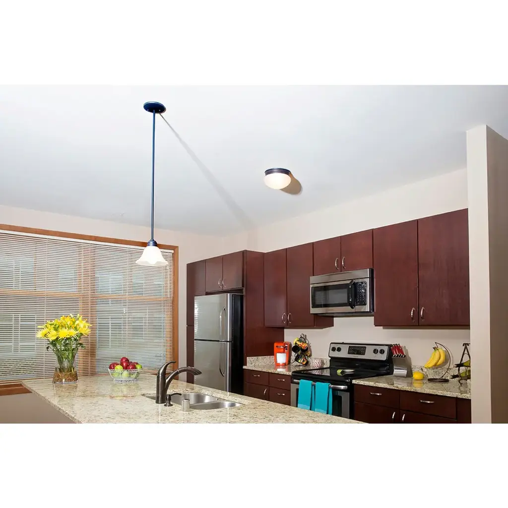 The Design House 514539 Millbridge 2-Light Ceiling Mount is made of formed steel, alabaster glass, and finished in oil-rubbed bronze. This two-light ceiling mount is made for 120-volts and uses two 60-watt medium-base incandescent bulbs. As one of the most popular light fixtures, ceiling mounts are suited for any room in the house as they hang close to the ceiling with a classic half-moon shape. Measuring 5-1/4inch by 9-1/2inch, this 2-1/2-pound fixturefoots clean lines and sleek details add a modern accent in a kitchen, dining room, or entryway. The Millbridge collection features a beautiful matching pendant, chandelier, ceiling mount, and vanity light.