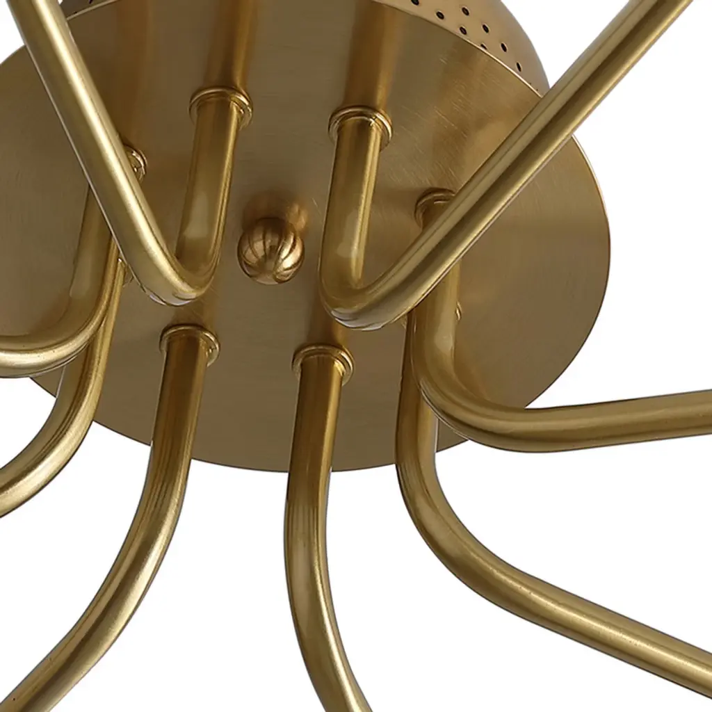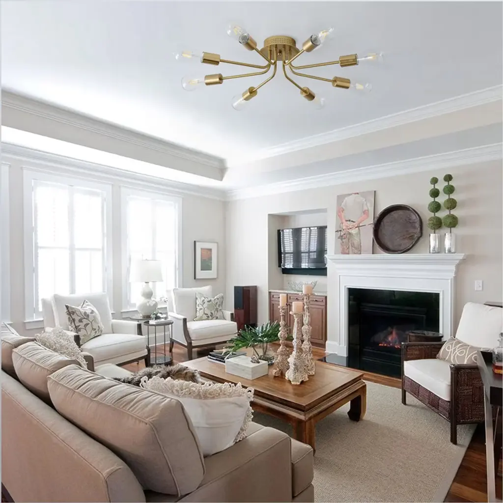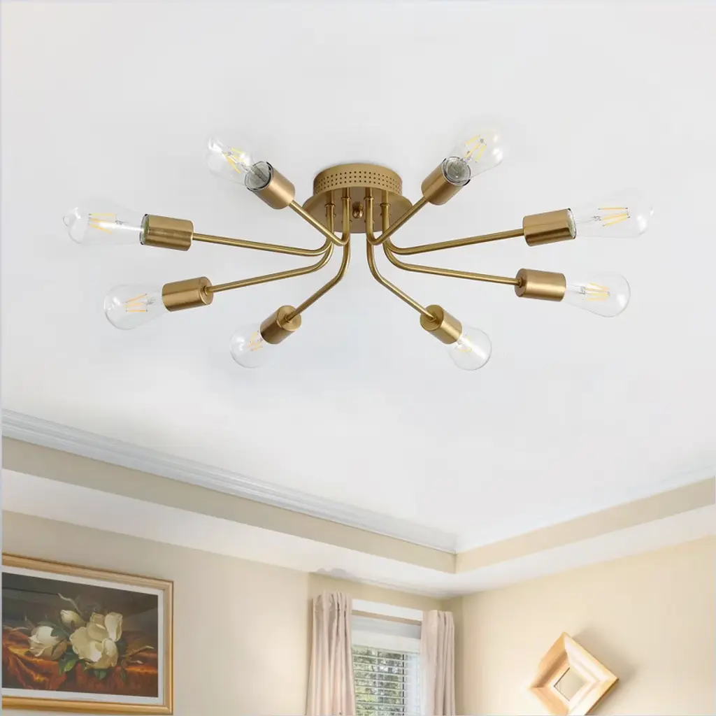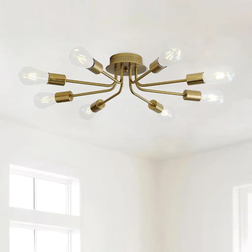 Dewdrop 8-light flush mount ceiling light features a gold sputnik design with 8 E26 sockets. ETL certified, low-profile, and ideal for modern bedrooms, kitchens, and living spaces.