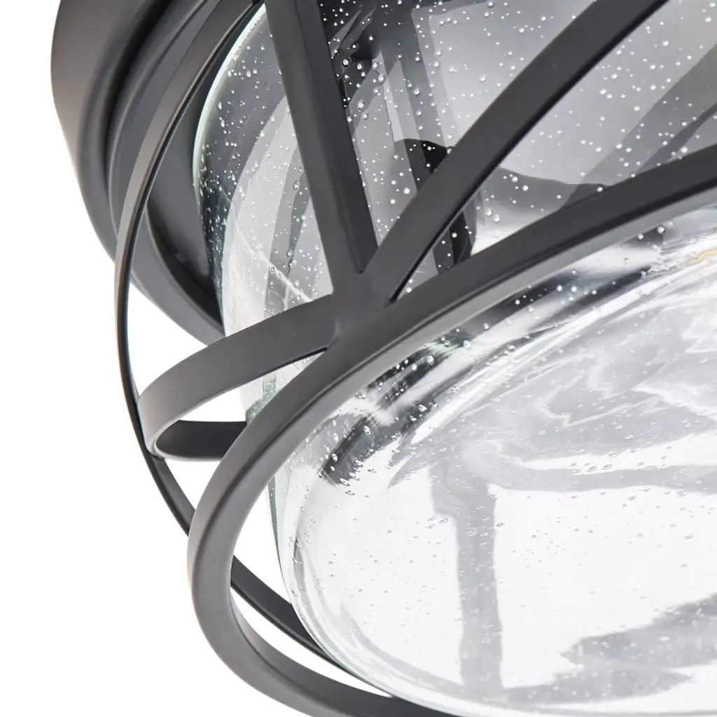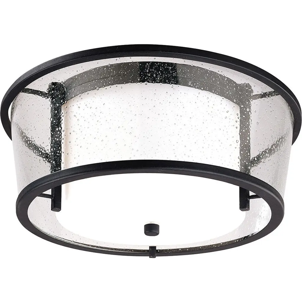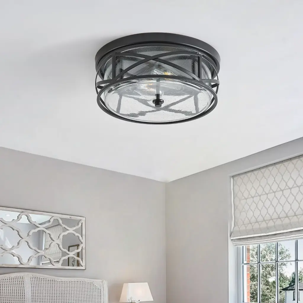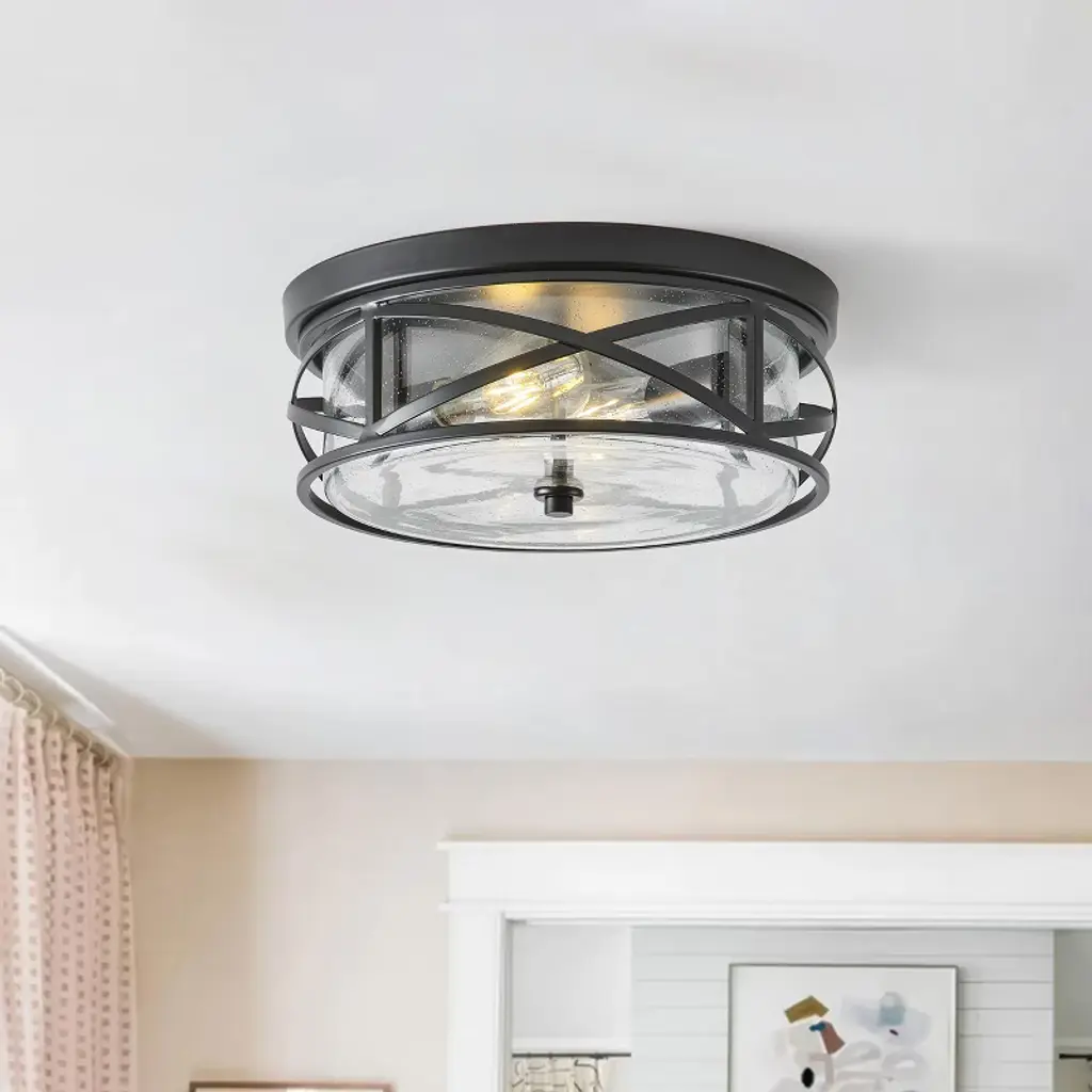 Dewdrop Farmhouse Flush Mount Ceiling Light Black Metal Frame With Seeded Glass Shade For Hallway Bedroom