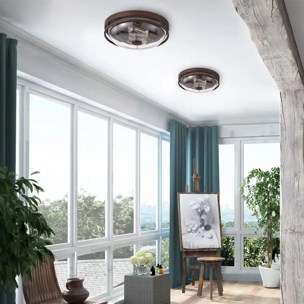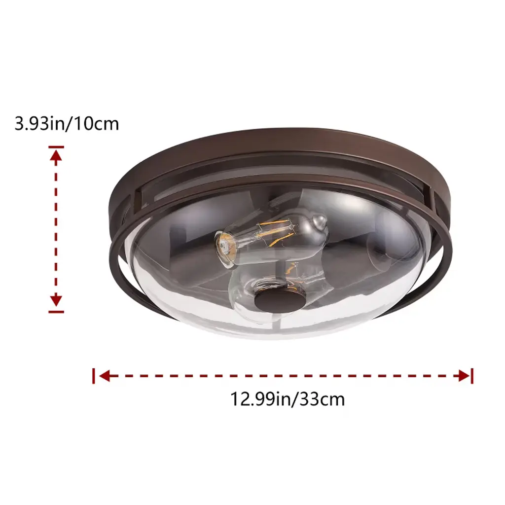 Upgrade your home lighting with the Dewdrop Flush Mount Ceiling Light. Designed with an oil-rubbed bronze iron frame and clear glass shade, this 2-light fixture combines rustic farmhouse charm with industrial style. Equipped with two E26 sockets (40W max each, 120V), it supports LED, incandescent, and CFL bulbs for flexible lighting. ETL certified for safety and built with durable materials, this ceiling light is perfect for bedrooms, hallways, kitchens, dining rooms, and entryways.
