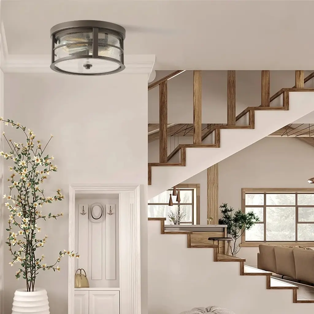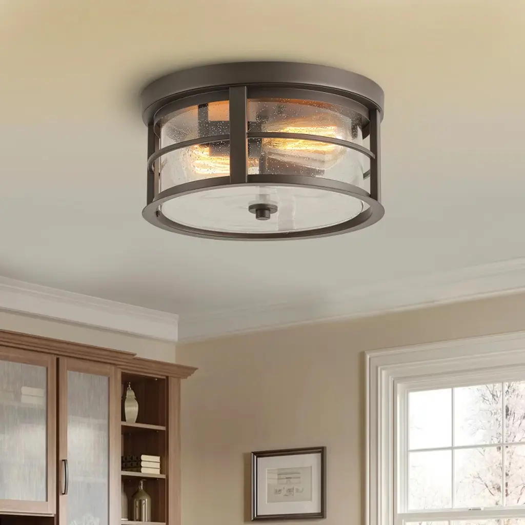 Dewdrop Flush Mount Ceiling Light Rustic Bronze Fixture With Clear Seeded Glass Shade For Bedroom Kitchen