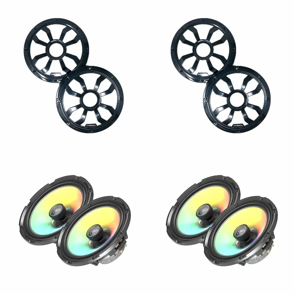 Diamond Audio Two Pairs Of Hxm8f4 Marine 8" Speakers With Black/black Grilles And Digital Led Controller