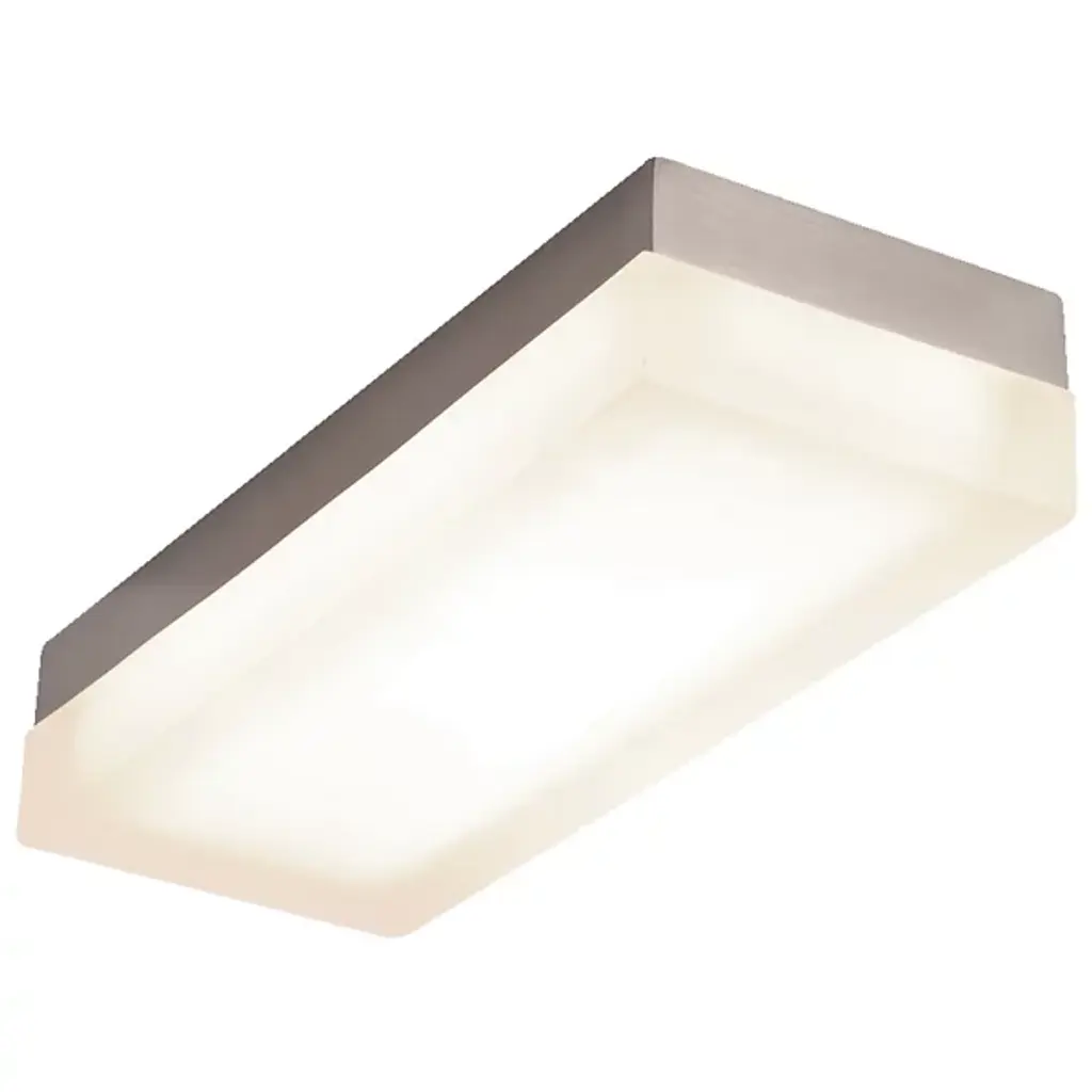 The simple, functional design of the Dice Rectangular Flushmount from dweLED can be installed into a broad range of environments, such as residential, commercial, and healthcare. Attached to the ceiling is a metallic base that holds the thick, etched pressed glass diffuser, which disperses the energy-efficient LED light to ensure an even, steady glow. As a truly versatile ceiling light, this fixture can be incorporated as hallway lighting, or an outdoor light depending on your specific lighting needs.