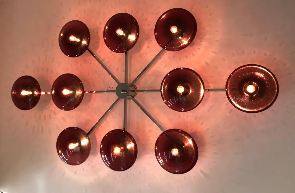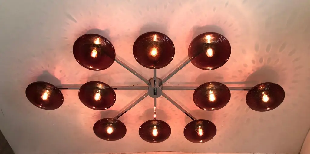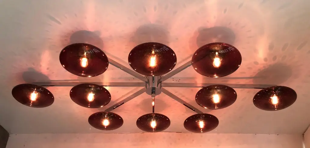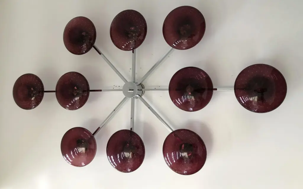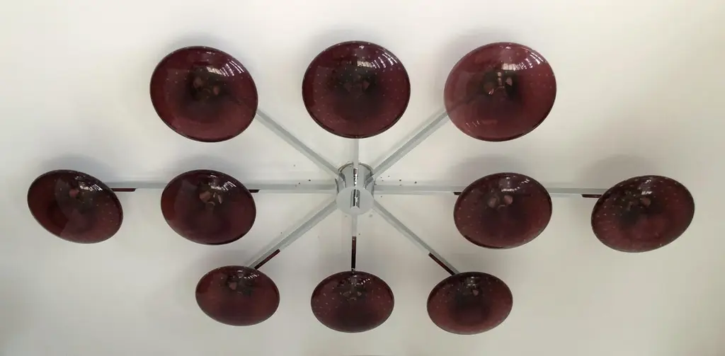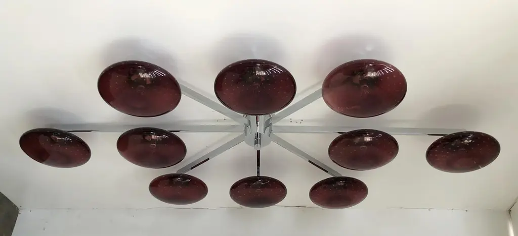 Italian flush mount with Murano glass shades mounted on solid brass frame / Designed by Fabio Bergomi by Fabio Ltd / Made in ItalyLength: 81 inches / Width: 44 inches / Height: 8 inches10 lights / E12 or E14 type / max 40W eachOrder only / This item ships from ItalyOrder Reference #: FABIOLTD DIECI SHADE FLUSH MOUNTThe listed price applies to the following finishes : Bronzed, Polished Chrome, Satin Chrome, Polished Nickel, Satin Nickel, Polished Black Nickel, Satin Black Nickel, Polished Copper, Satin CopperOther finishes are available : Unlacquered Natural Brass, Unlacquered Polished Brass, Lacquered Polished Brass, Lacquered Satin Brass