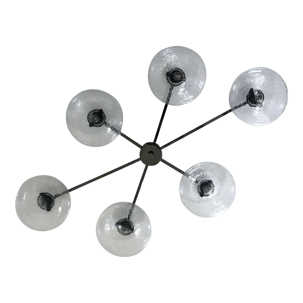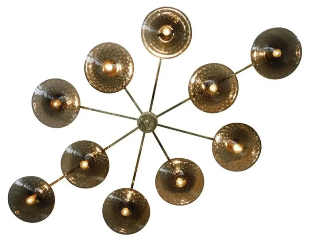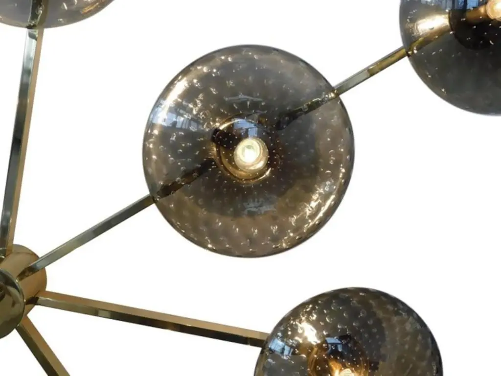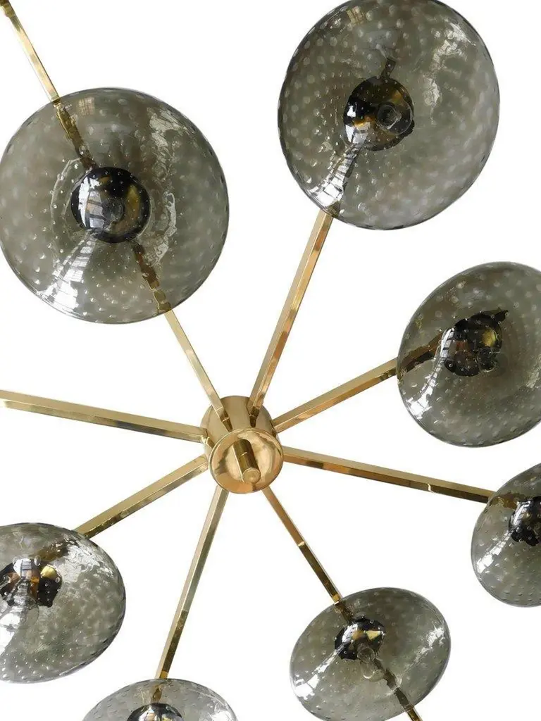 Italian flush mount with Murano glass shades mounted on solid brass frame / Designed by Fabio Bergomi by Fabio Ltd / Made in ItalyLength: 81 inches / Width: 44 inches / Height: 8 inches10 lights / E12 or E14 type / max 40W eachOrder only / This item ships from ItalyOrder Reference #: FABIOLTD DIECI SHADE FLUSH MOUNTThe listed price applies to all Brass finishes : Unlacquered Natural Brass, Unlacquered Polished Brass, Lacquered Polished Brass, Lacquered Satin BrassOther finishes available with upcharge of $700: Bronzed, Polished Chrome, Satin Chrome, Polished Nickel, Satin Nickel, Polished Black Nickel, Satin Black Nickel, Polished Copper, Satin Copper