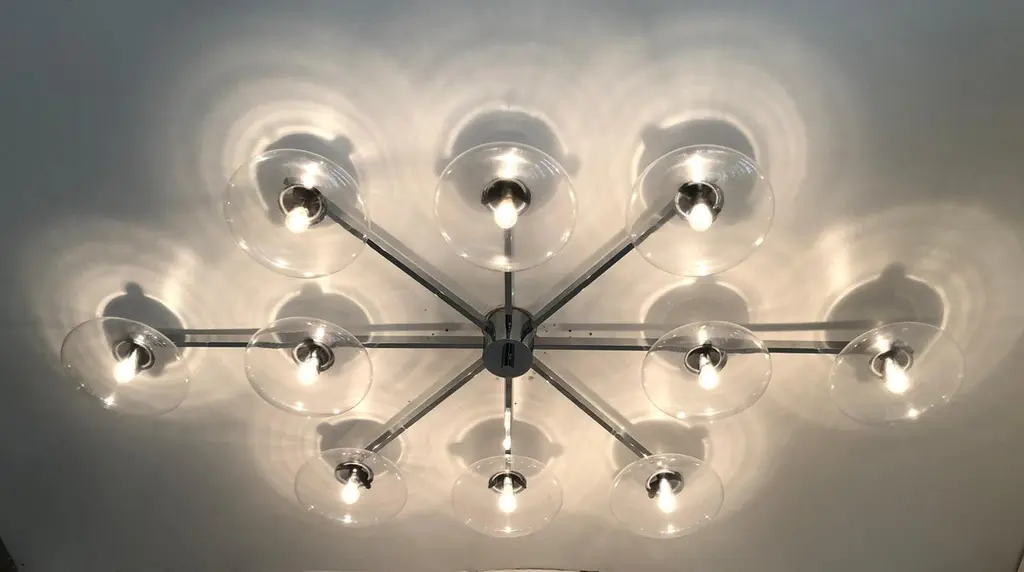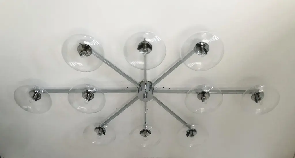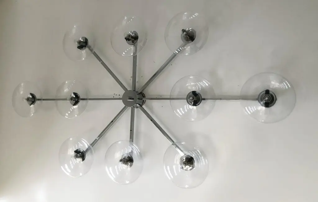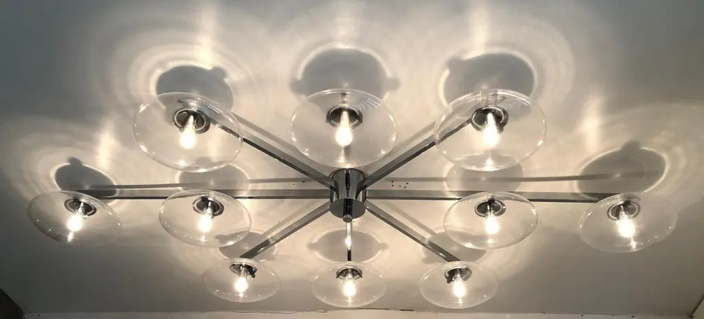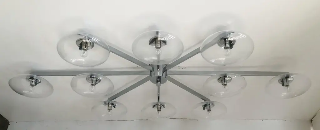 Italian flush mount with Murano glass shades mounted on solid brass frame / Designed by Fabio Bergomi by Fabio Ltd / Made in ItalyLength: 81 inches / Width: 44 inches / Height: 8 inches10 lights / E12 or E14 type / max 40W eachOrder only / This item ships from ItalyOrder Reference #: FABIOLTD DIECI SHADE FLUSH MOUNTThe listed price applies to the following finishes : Bronzed, Polished Chrome, Satin Chrome, Polished Nickel, Satin Nickel, Polished Black Nickel, Satin Black Nickel, Polished Copper, Satin CopperOther finishes are available : Unlacquered Natural Brass, Unlacquered Polished Brass, Lacquered Polished Brass, Lacquered Satin Brass