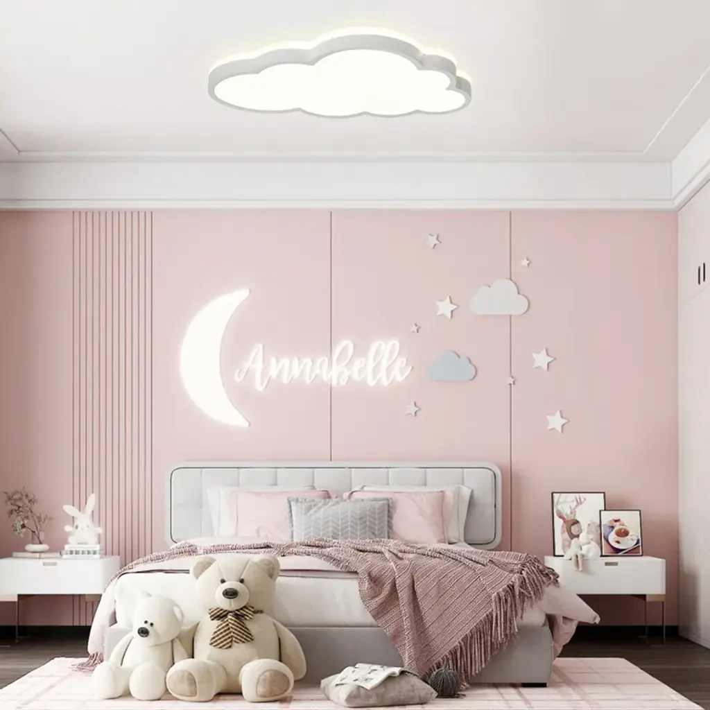 The lovely LED flush mount ceiling light is a creative fantasy way to add a touch of sophistication to a living room, bedroom, or children's bedroom. Crafted from a sleek frosted acrylic diffuser with white edge, this ultra-thin, cloud shaped light is equipped with high-performance LED and remote control, making it a fully adjustable and modern cozy lighting choice.Note: This LED ceiling light is dimmable and comes with a remote control that allows you to adjust both its brightness and color temperature. Using a general wall switch will cycle the light between warm and cool colors (3000K-6000K), as well as between dark and bright settings. Please note that this light is not compatible with a dimmer switch.Features:Specification: