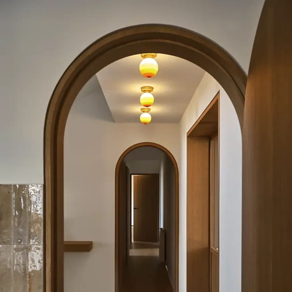 The Dipping A2 LED Wall / Flushmount from Marset is a refined fixture designed by Jordi Canudas. This piece is illuminated by an integrated LED and boasts a captivating globe-shaped shade crafted from fine glass, which is accentuated by elegant banding. A sturdy metal plate securely holds the shade in place, showcasing the precision of Spanish craftsmanship. Whether mounted on walls or ceilings, this versatile lighting solution adds a touch of sophistication to your setting.