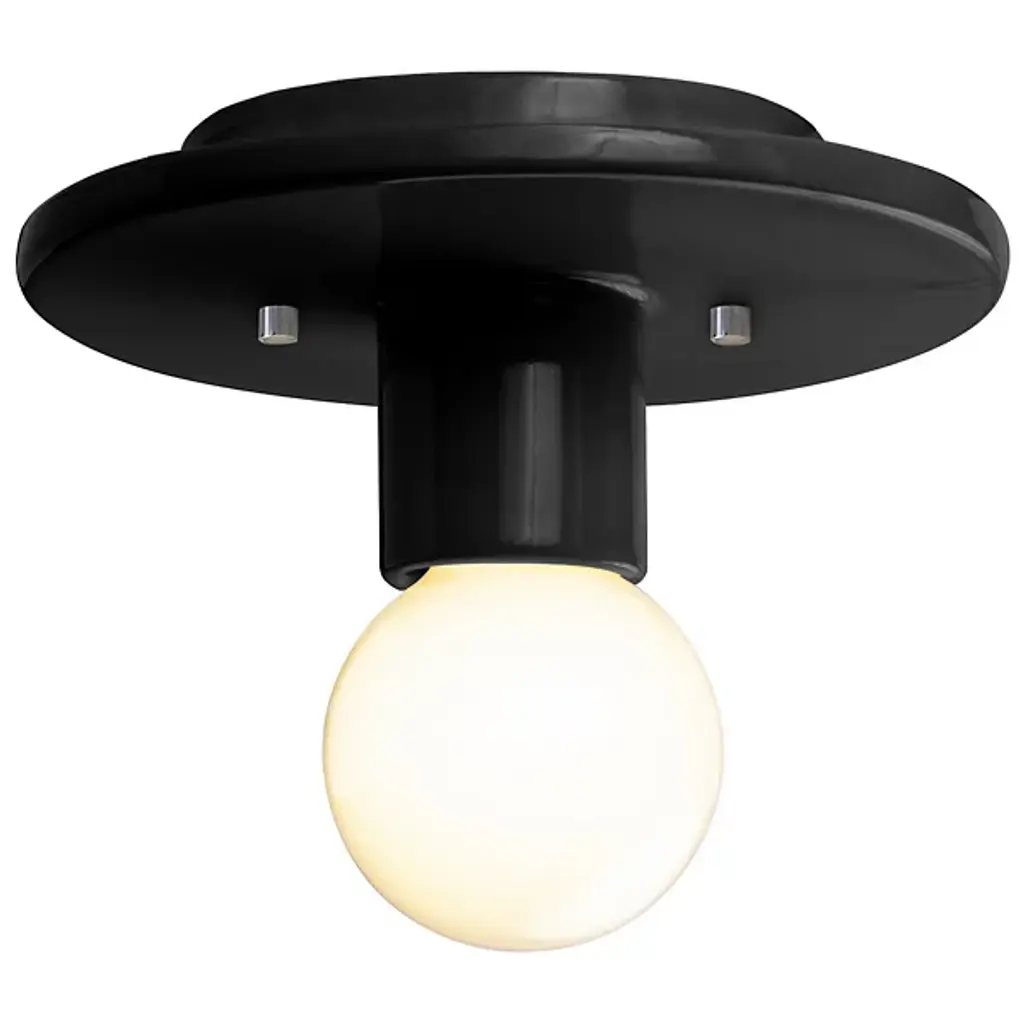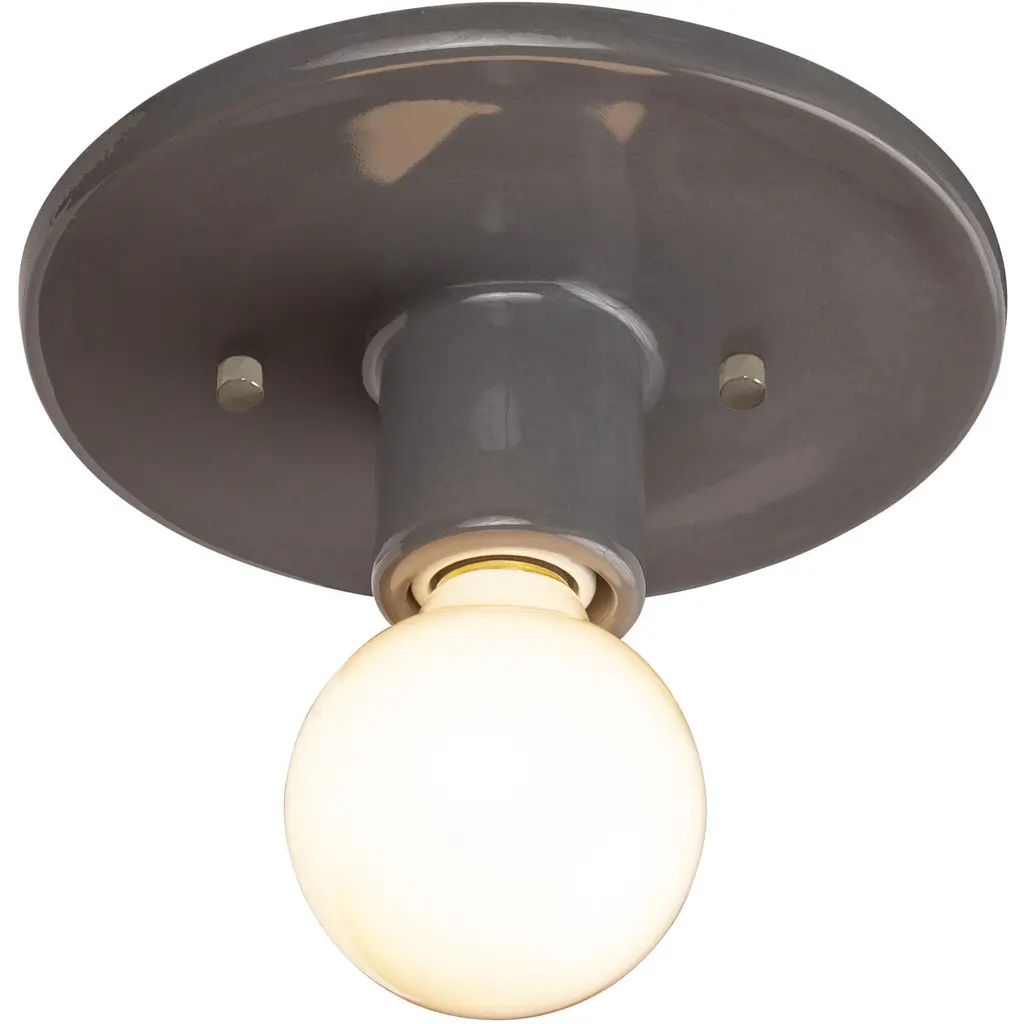Go bold or keep things discreet with the Discus Flushmount by Justice Design Group. The shape is itself relatively thin and simple, with a disc-shaped base and central lightbulb holder made of 100% Ceramic. The final aesthetic effect is determined by the choice of glaze. Whichever direction you decide to go, this modern flushmount is designed to function brightly and cast ample ambience throughout any bathroom, kitchen or other living space with lower ceilings.