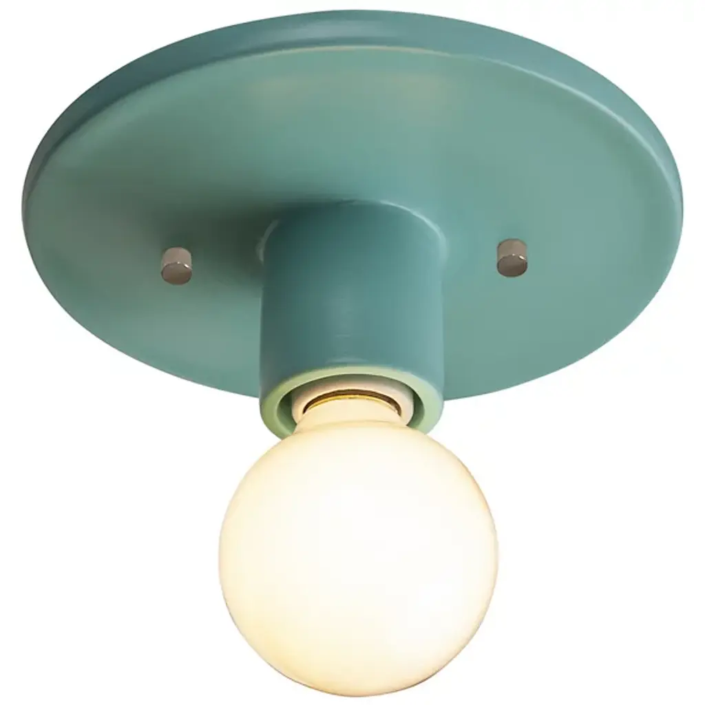 Go bold or keep things discreet with the Discus Flushmount by Justice Design Group. The shape is itself relatively thin and simple, with a disc-shaped base and central lightbulb holder made of 100% Ceramic. The final aesthetic effect is determined by the choice of glaze. Whichever direction you decide to go, this modern flushmount is designed to function brightly and cast ample ambience throughout any bathroom, kitchen or other living space with lower ceilings.