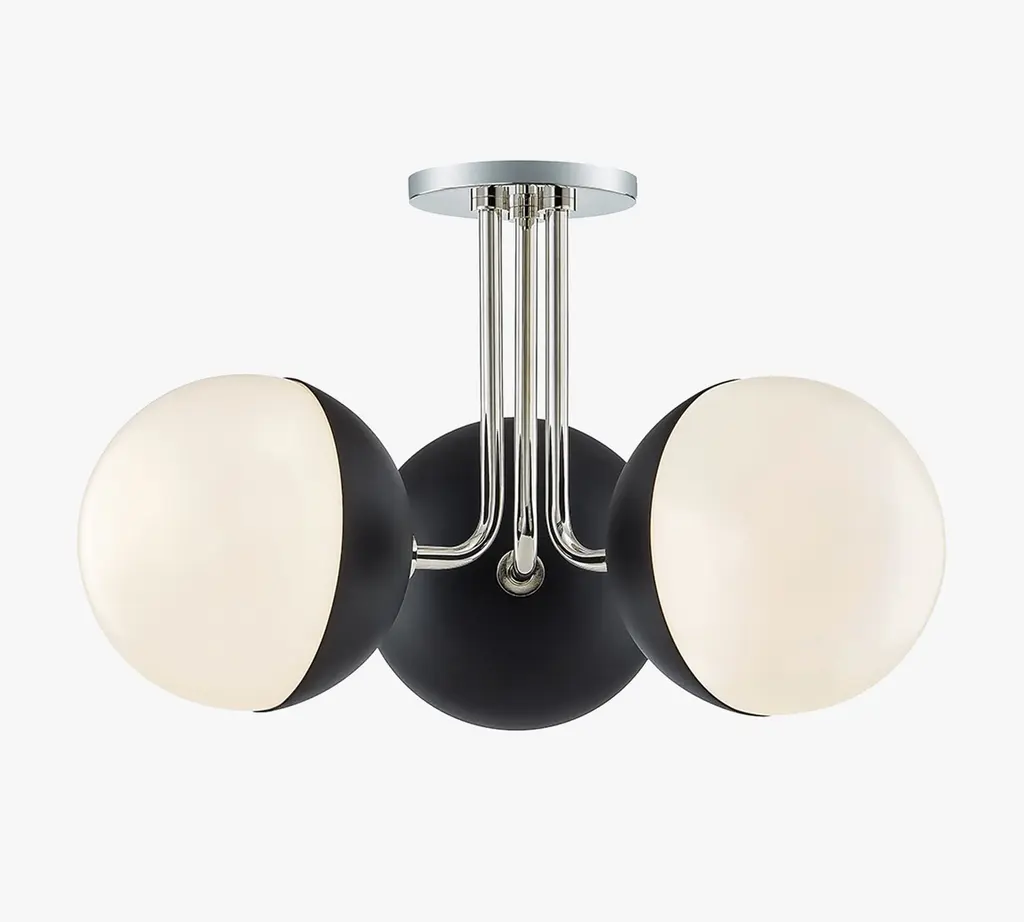 Dixie is defined by its spherical shape and high-contrast, modern aesthetic. Finished with polished metal, it has a retro feel that brings a bit of fun to any room it brightens, adding a good-humored wink that prevents decor from being too serious.