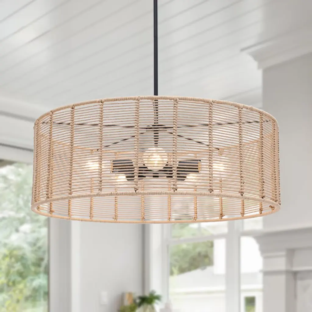A bohemian darling, Dolores is brimming with theatrical flair. Dolores pays homage to the cane mania of the 70s, reinvented for today. Natural cane is woven intricately around a white cotton shade, contrasted with a soft black finish. The flush mount and pendant versions feature a decorative tassel for good measure.