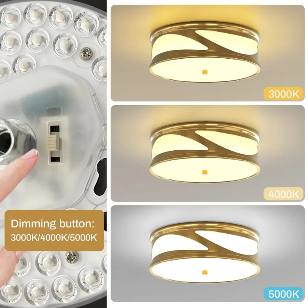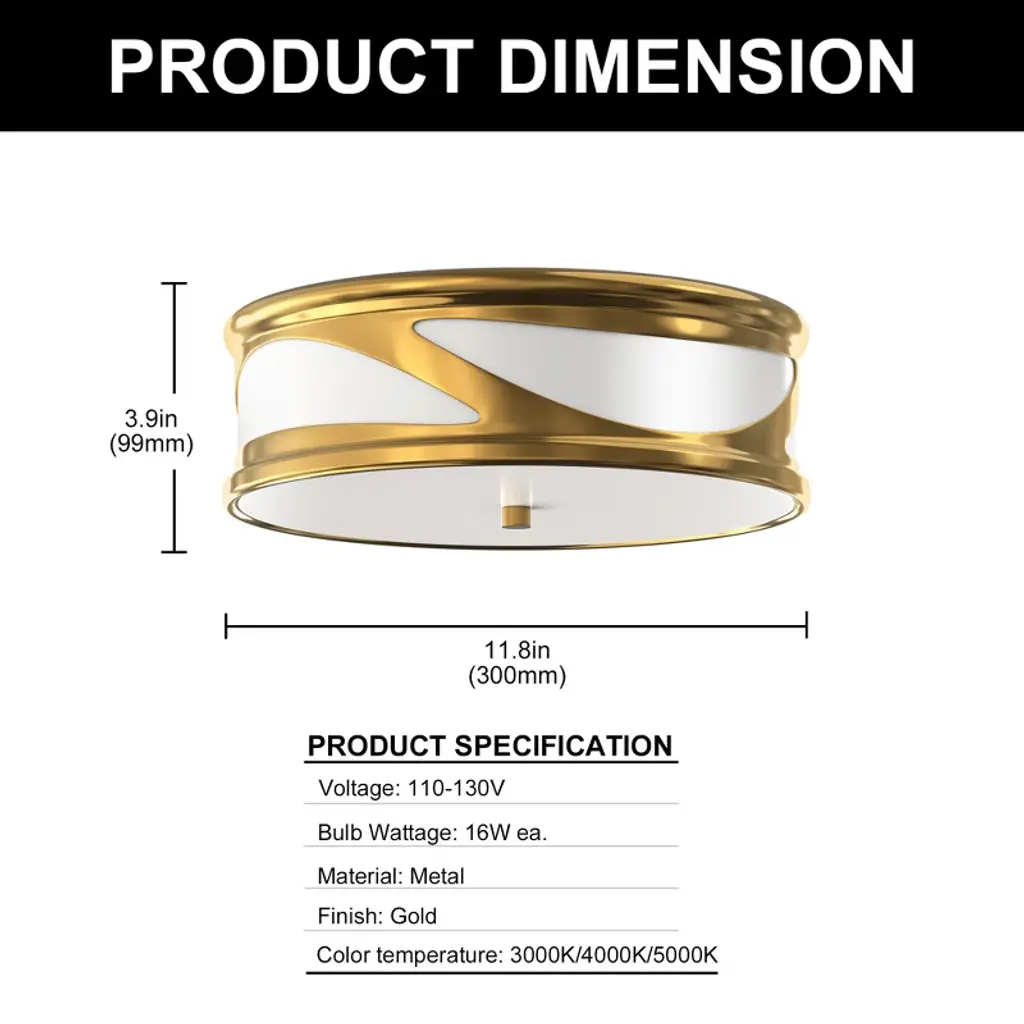Illuminate your space with this round LED flush mount ceiling light featuring a copper-tone metal frame and premium glass diffuser. The integrated 16W LED delivers 1100 lumens of bright, energy-efficient illumination, with selectable color temperatures of 3000K, 4000K, and 5000K to match your mood or d¨¦cor. Built with durable metal and glass, this fixture offers a sleek, modern design ideal for bedrooms, living rooms, or offices. Comes with installation accessories and English instruction manual for easy setup.