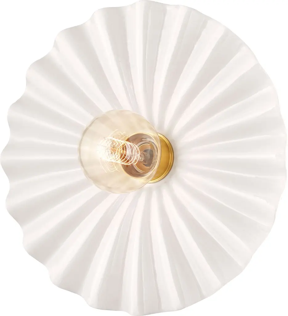 The fluted white ceramic shade gives this ceiling fixture a flirty charm that complements the gleaming brass finish of the canopy. Because the flush-mount fixture is damp rated, you can use it in a bathroom as well as in a hallway, in a bedroom, or just about anywhere else in your home.