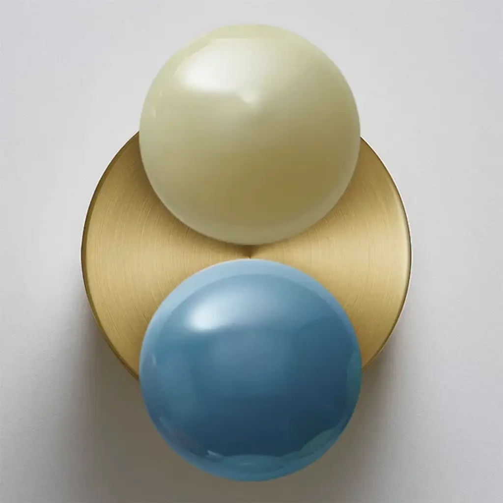The Dot 2X Wall / Flushmount from SkLO pairs a clean silhouette with a joyful sense of color. A smooth design created to spark a happy emotional response, its circular form supports two rounded, hand-blown glass diffusers made in the Czech Republic, each with the rich color and depth reminiscent of hard candy. These vibrant diffusers emit a soft, inviting glow, providing a warm contrast to the polished brass mounting plate. The fixture is ADA compliant if installed on walls, while its compact size makes it great for even low ceilings, bringing a playful, refined touch to interiors.