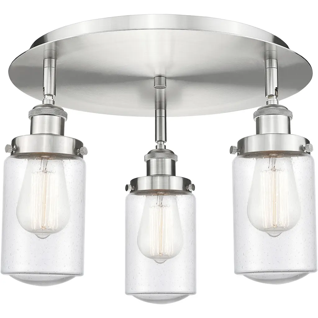 Dover 3 Light 16.25 Inch Satin Nickel Flush Mount Ceiling Light In Clear