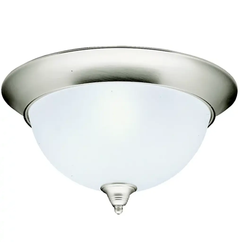 When looking for excellent lighting in an understated design, the Kichler Dover Flushmount is a great option. Featuring detailed etched seedy glass and two choices of finish, this flushmount will blend beautifully with a wide variety of decor. Choose from two sizes to best light the home.