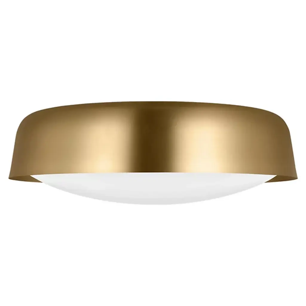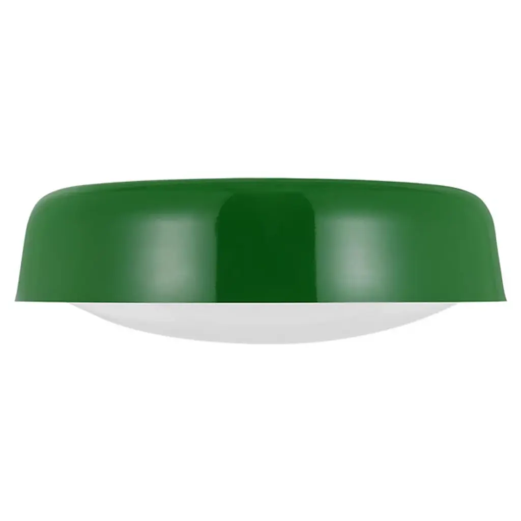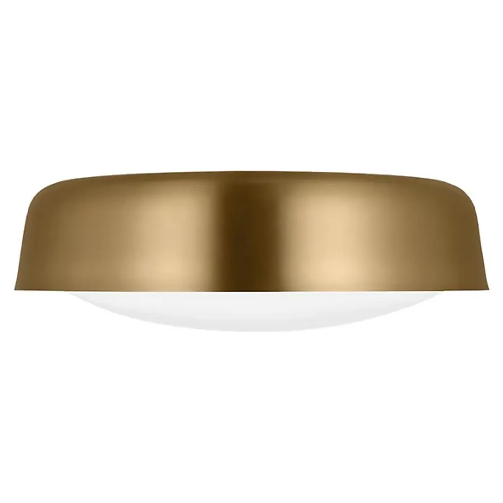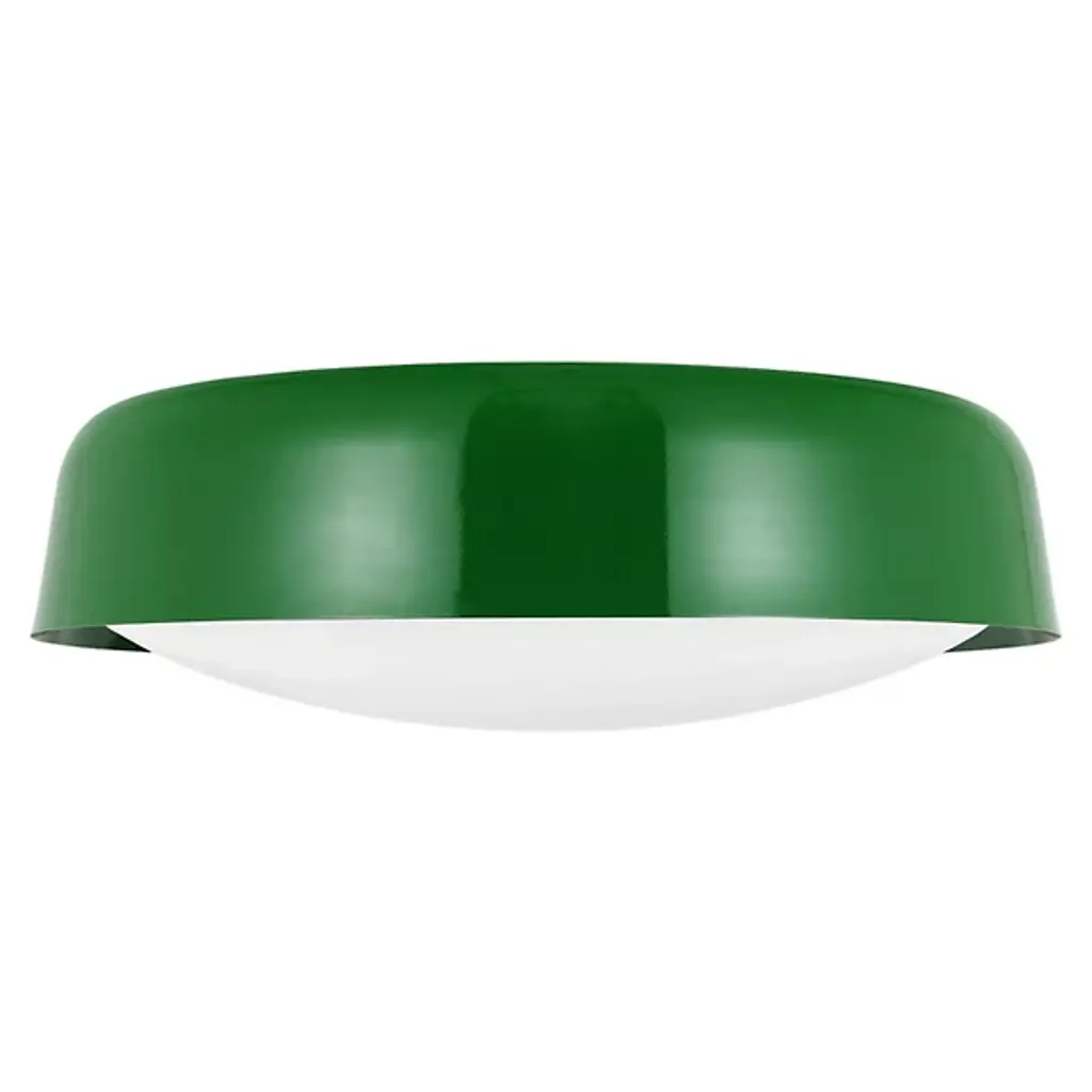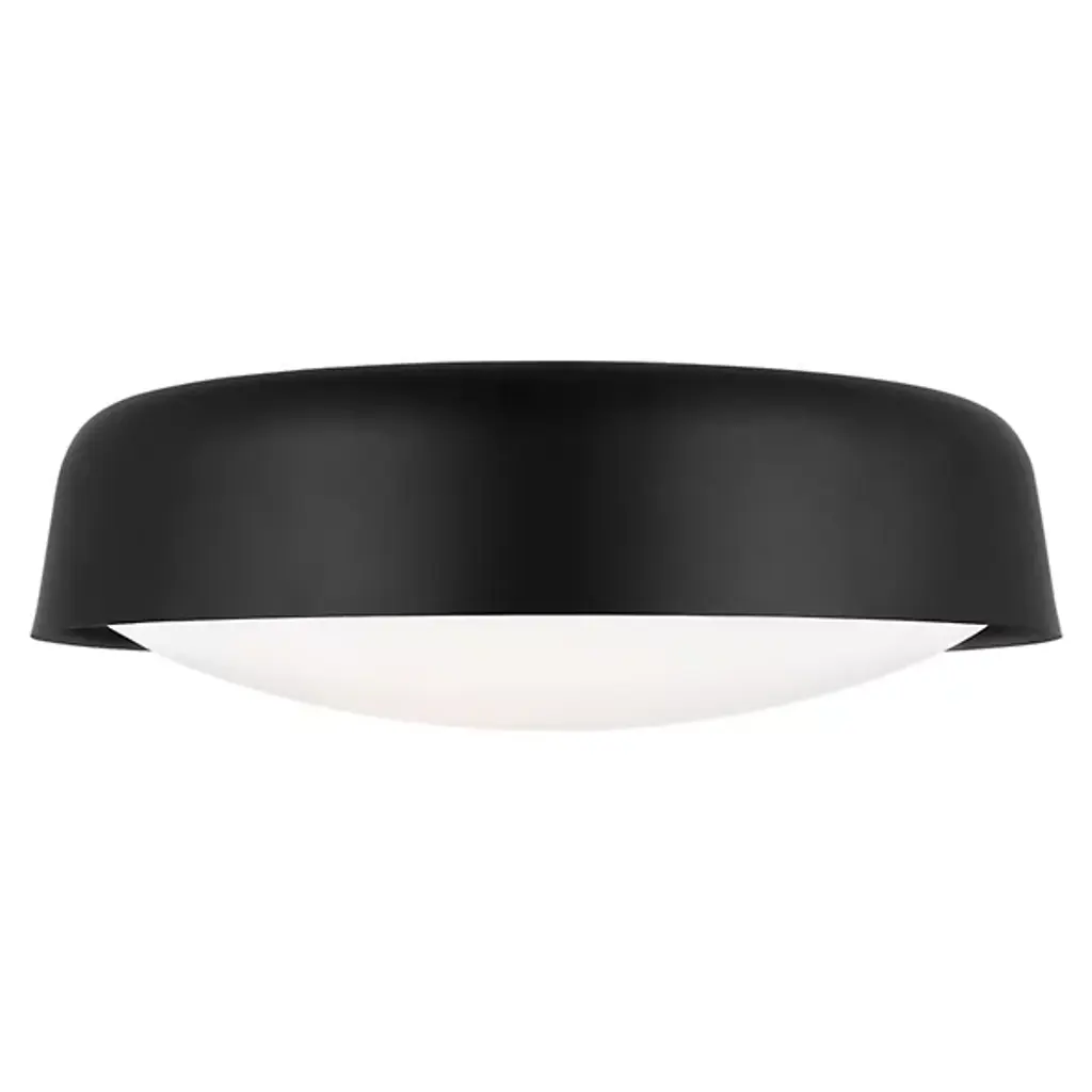 The Draper Large Flushmount from Visual Comfort Studio is designed by Kate Spade New York. Crafted from durable steel, this flushmount features a milk glass shade, emanating an inviting glow that enhances the visibility of your surroundings. Illuminated by LEDs, Draper adds a touch of class to your space. It is dimmable when used with an ELV dimmer. The shade rests neatly within the frame to bring light from overhead, making this fixture highly versatile.