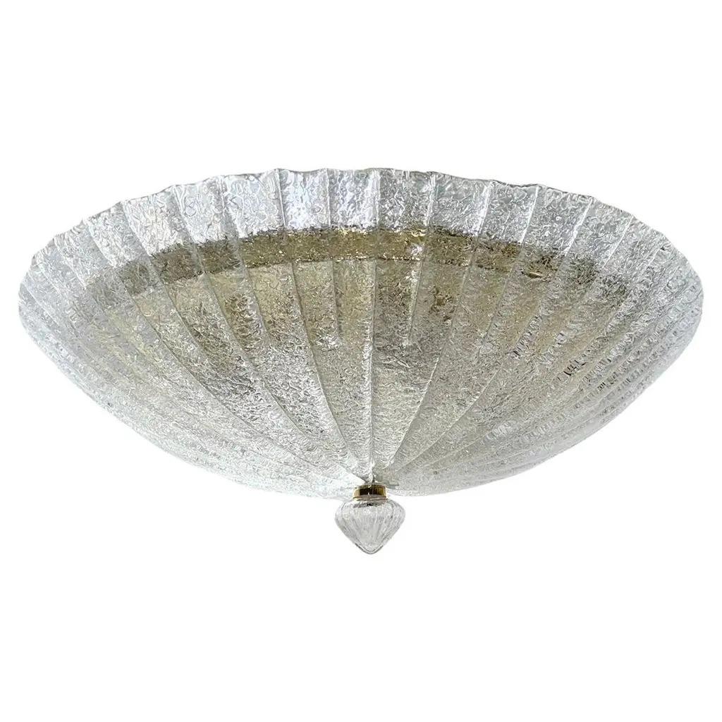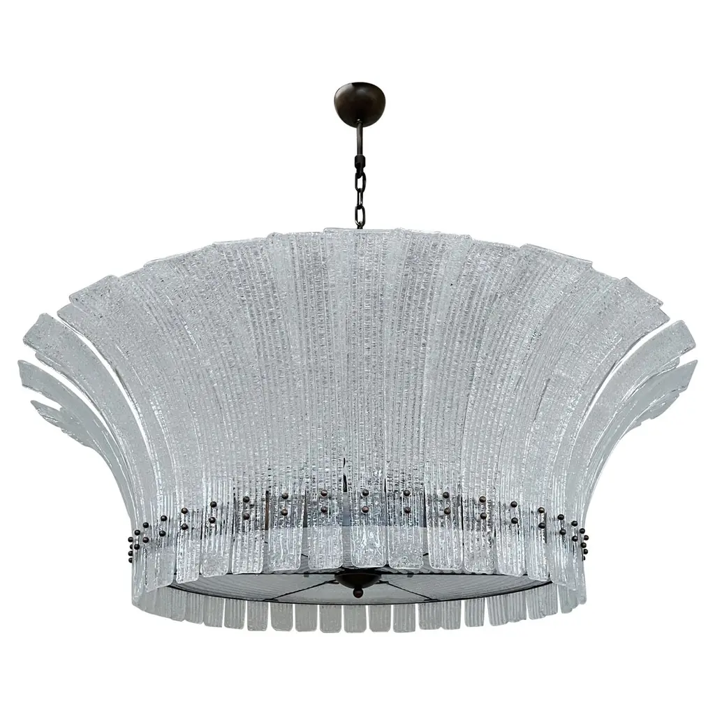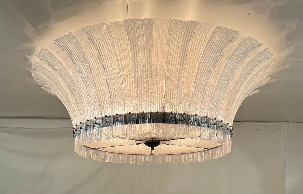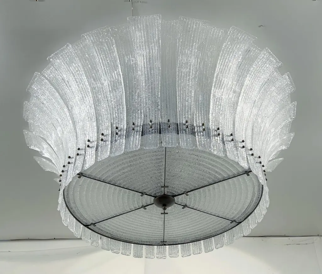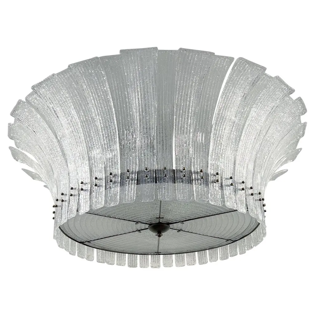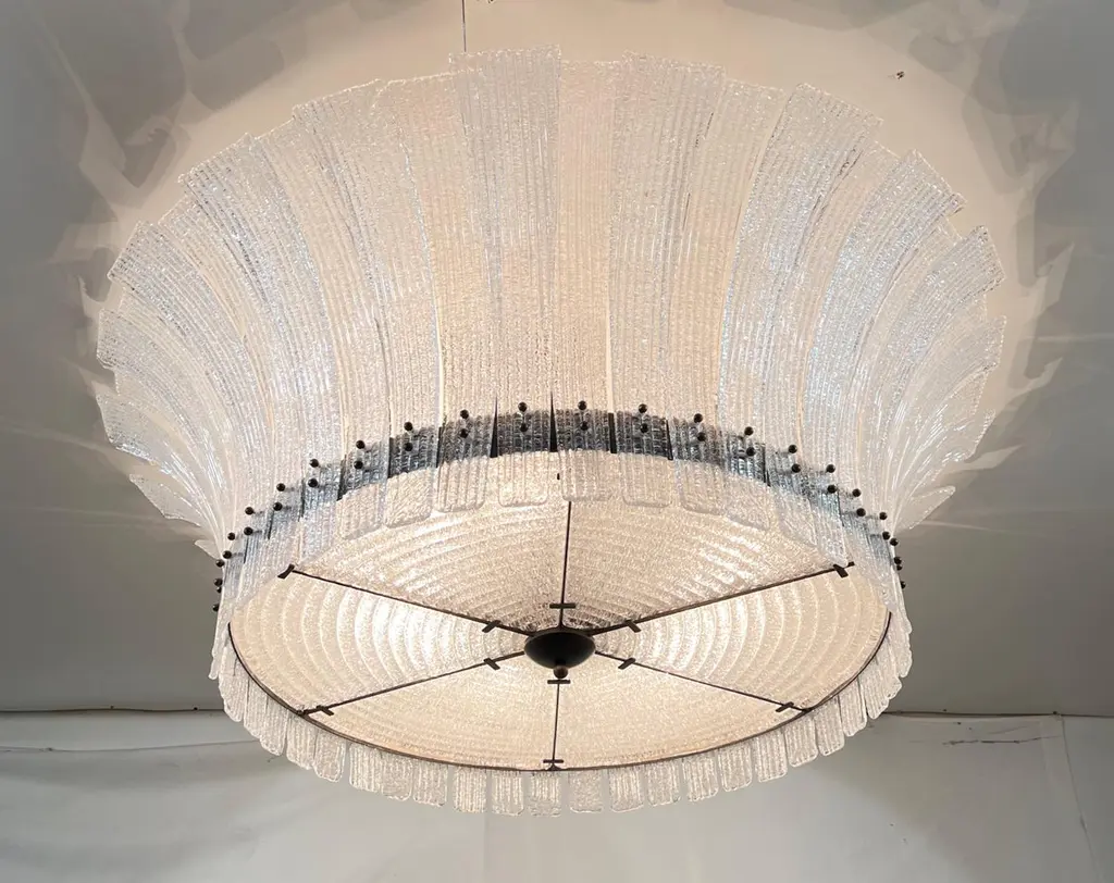 Italian modern flushmount with clear Murano glass leaves hand blown with textured granular effect using Graniglia technique, mounted on bronzed finish frame / Made in Italy12 lights / E26 type or E27 type / max 60W eachMeasures: Height 18, diameter 47 inchesOrder only / this item ships from ItalyOrder Reference #: FABIOLTD C409