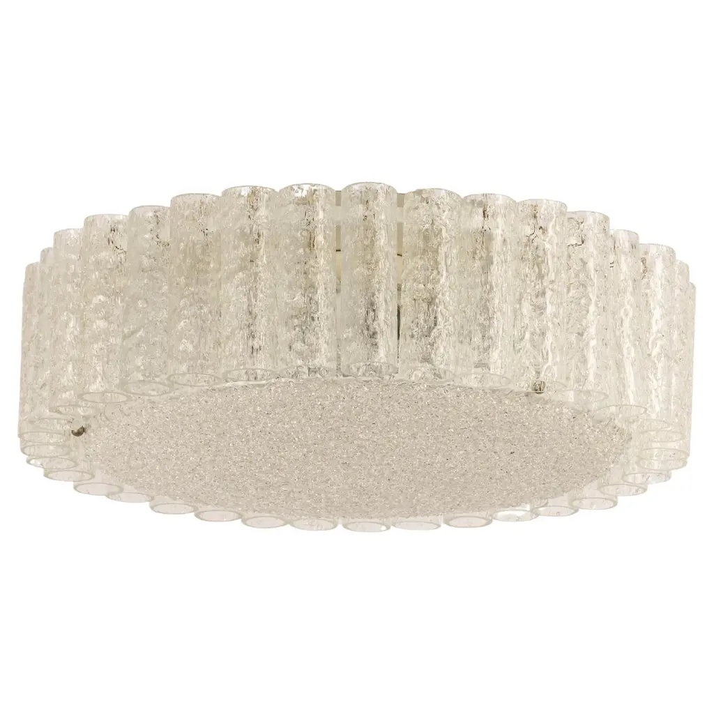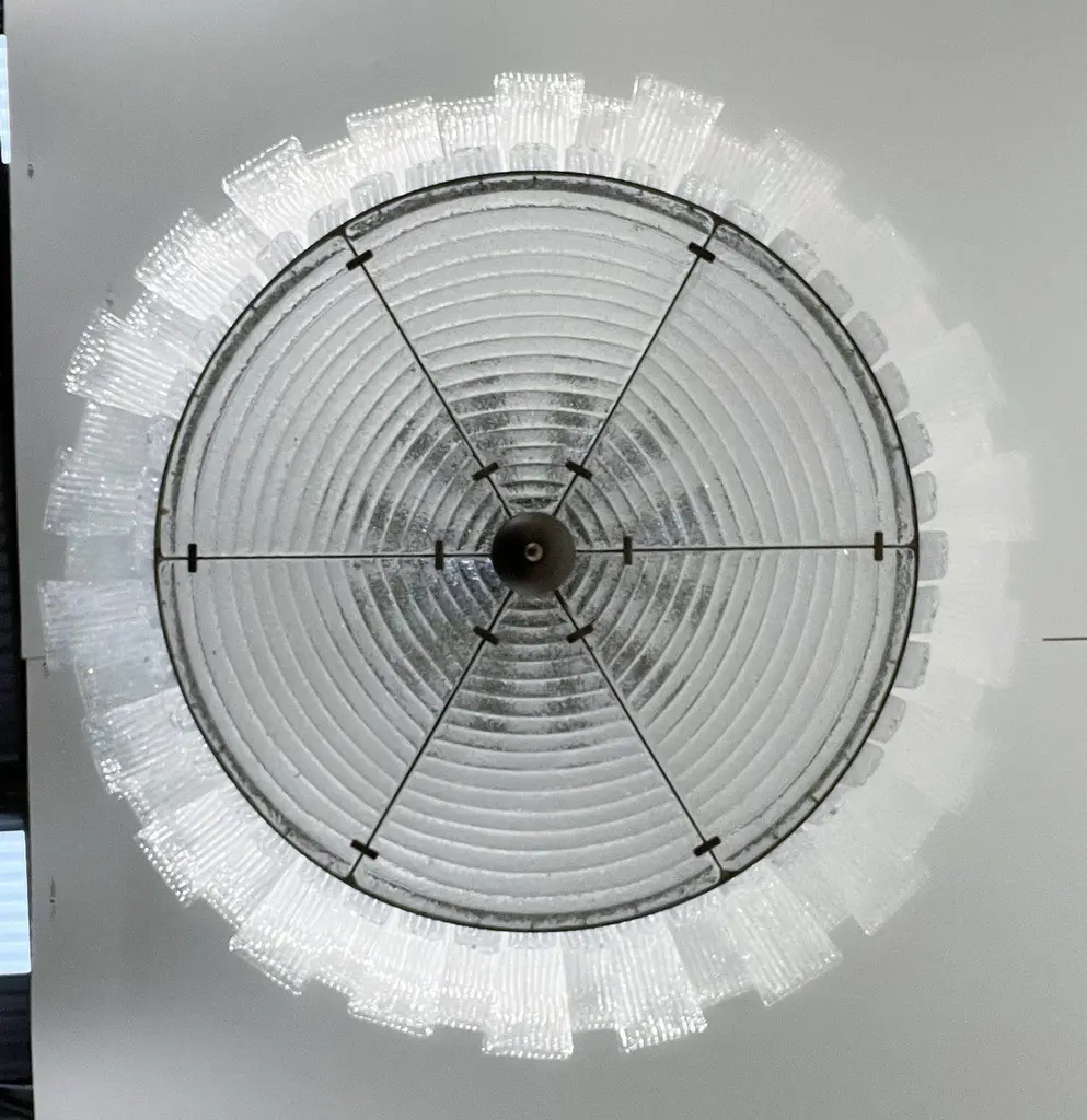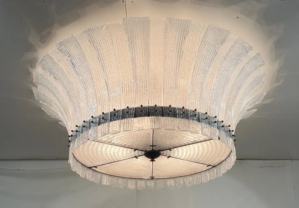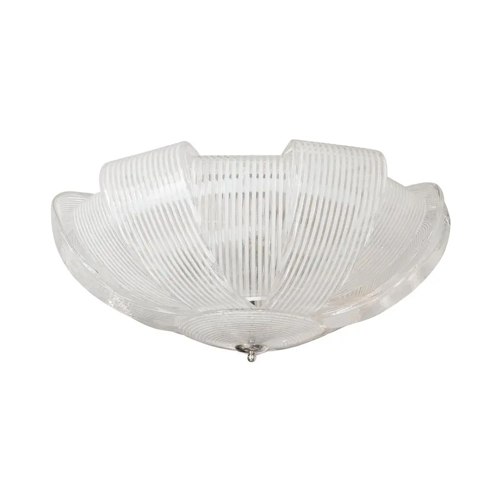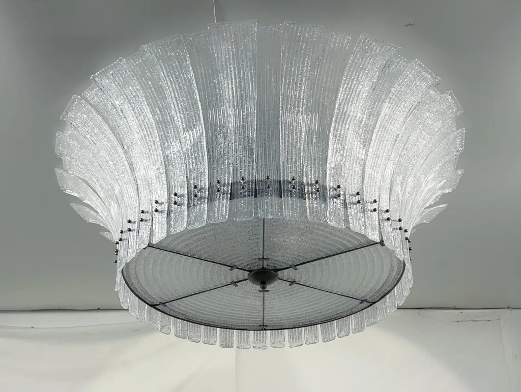 Italian modern flushmount with clear Murano glass leaves hand blown with textured granular effect using Graniglia technique, mounted on bronzed finish frame / Made in Italy12 lights / E26 type or E27 type / max 60W eachMeasures: Height 18, diameter 47 inchesOrder only / this item ships from ItalyOrder Reference #: FABIOLTD C409