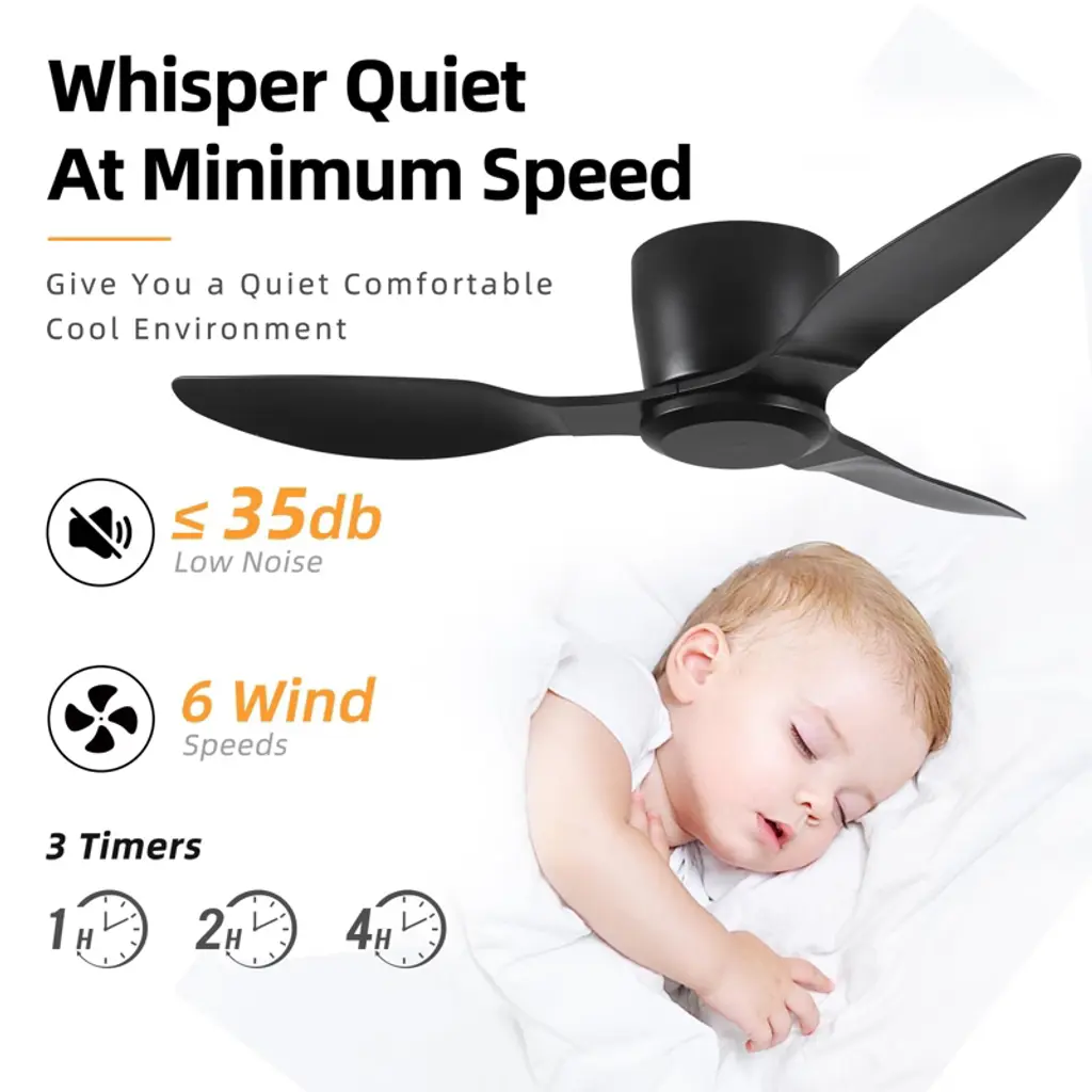Duclsaty 40" Black Ceiling Fan No Light, Flush Mount, 3 Blades, 6-speed Dc Motor, Remote With Timer, Noiseless Reversible, For Bedroom/living Room