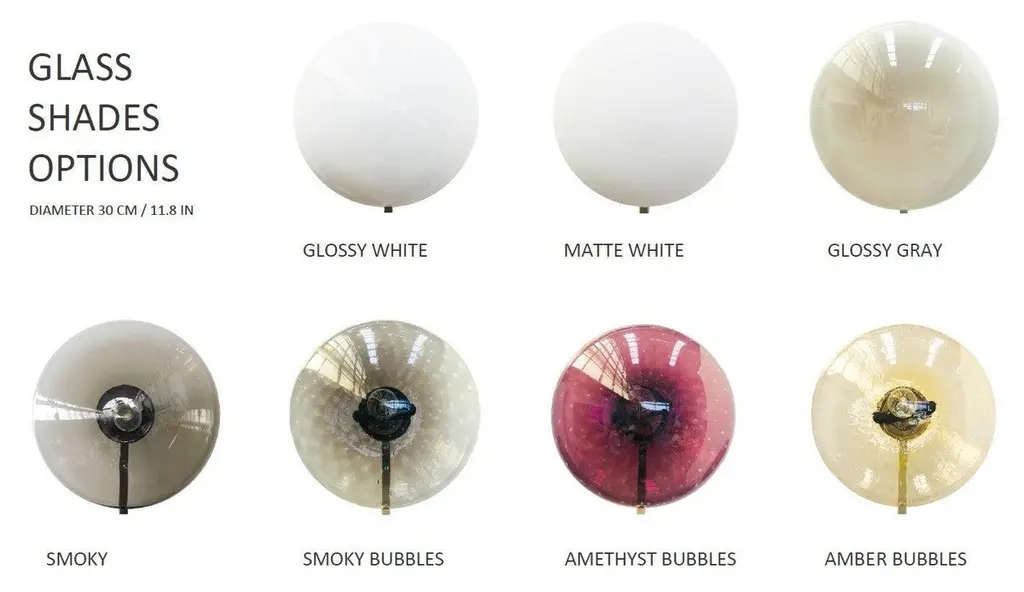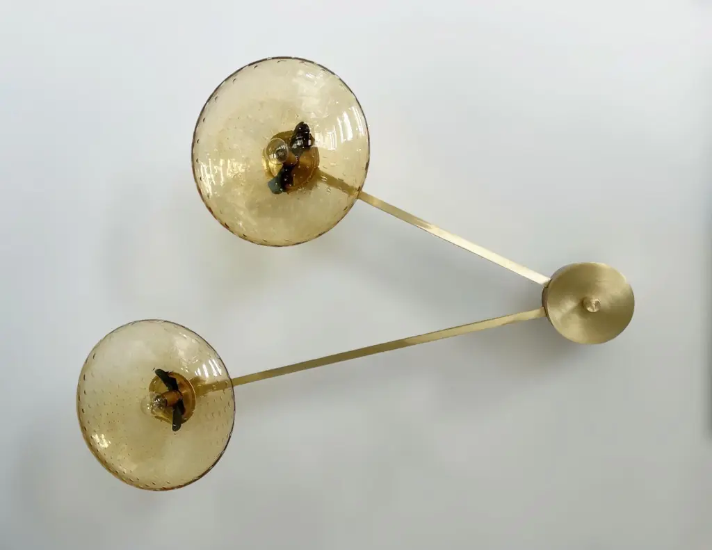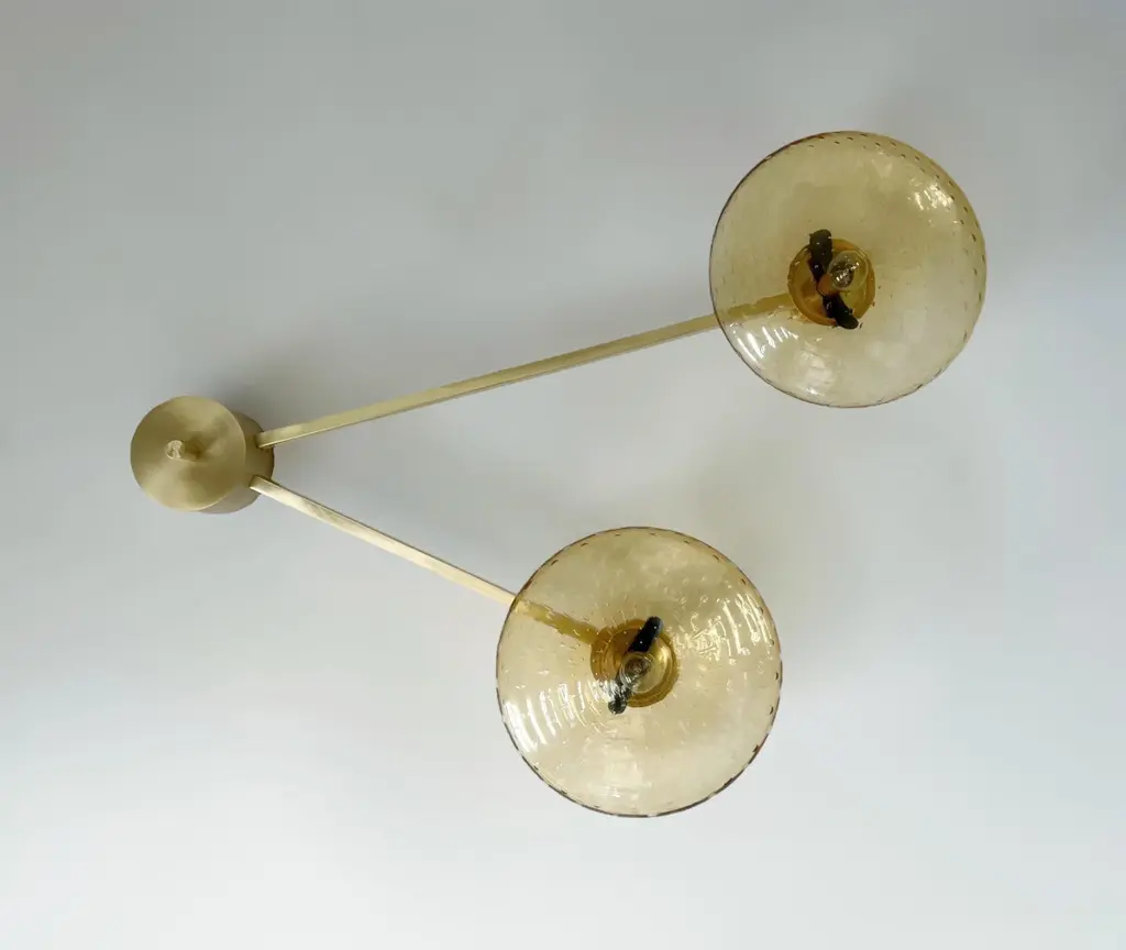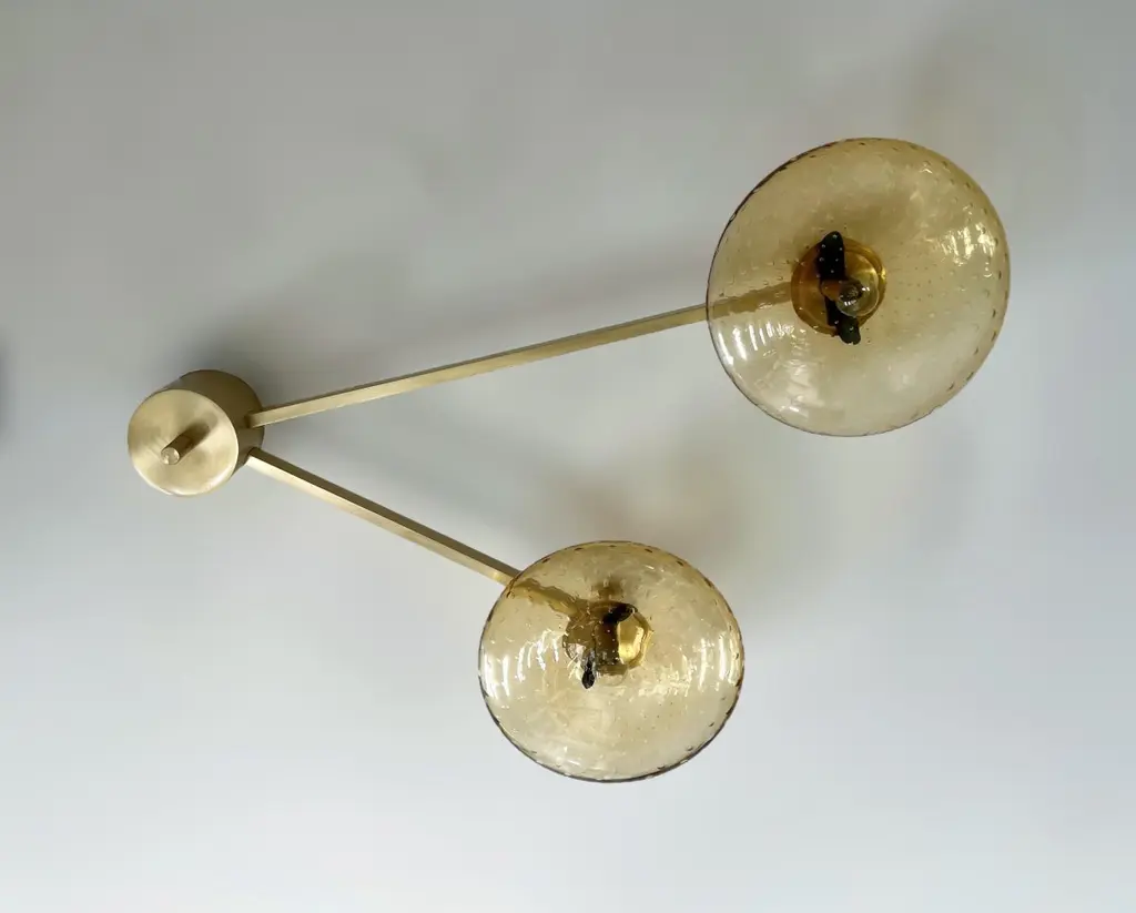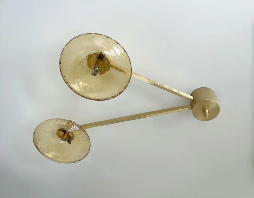 Italian flush mount with Murano glass shades mounted on solid brass frame / Made in ItalyDesigned by Fabio Ltd, inspired by Angelo Lelli and Arredoluce styles3 lights / E12 or E14 type / max 40W eachLength: 35 inches / Width: 28 inches / Height: 7.5 inchesOrder Only / This item ships from ItalyOrder Reference #: DUE SHADE FLUSH MOUNTThe listed price applies to all Brass finishes : Unlacquered Natural Brass, Unlacquered Polished Brass, Lacquered Polished Brass, Lacquered Satin BrassOther finishes available with upcharge of $200: Bronzed, Polished Chrome, Satin Chrome, Polished Nickel, Satin Nickel, Polished Black Nickel, Satin Black Nickel, Polished Copper, Satin Copper