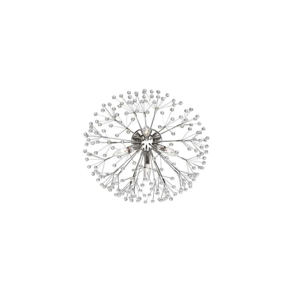 Densely populated with the highest-quality beveled crystal beads available, Dunkirk explodes on the scene. Candelabra bulbs from deep within illuminate the crystal-laden branches from behind for an effect that is both dazzling and mesmerizing. With a firework feel, Dunkirk is sure to become the centerpiece of any space, destined to cause oohs and ahhs. Available as a flush mount in two sizes and a chandelier in three, these fixtures can be used alone or together in scale for a breathtaking effect. Choose from Aged Brass or Polished Nickel.