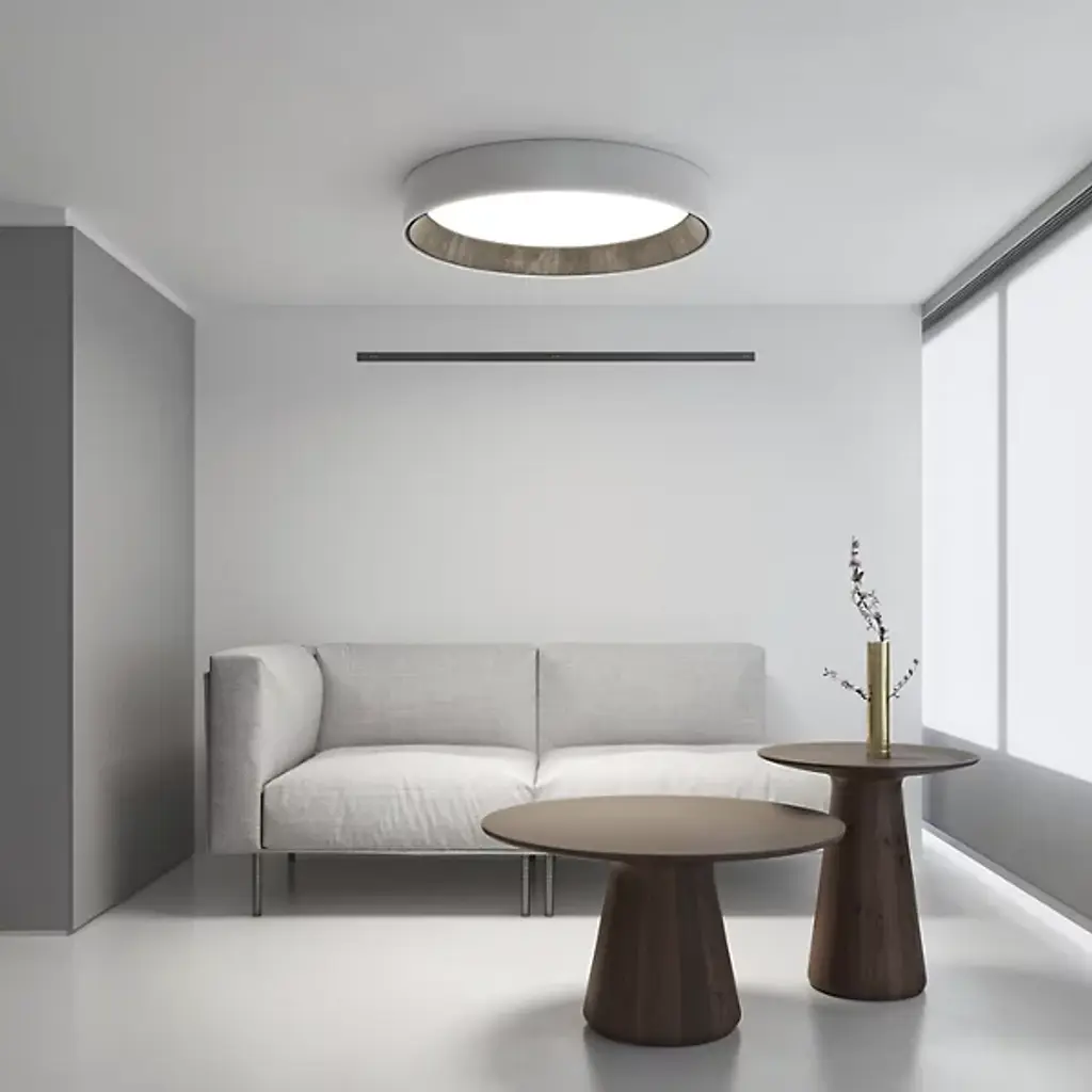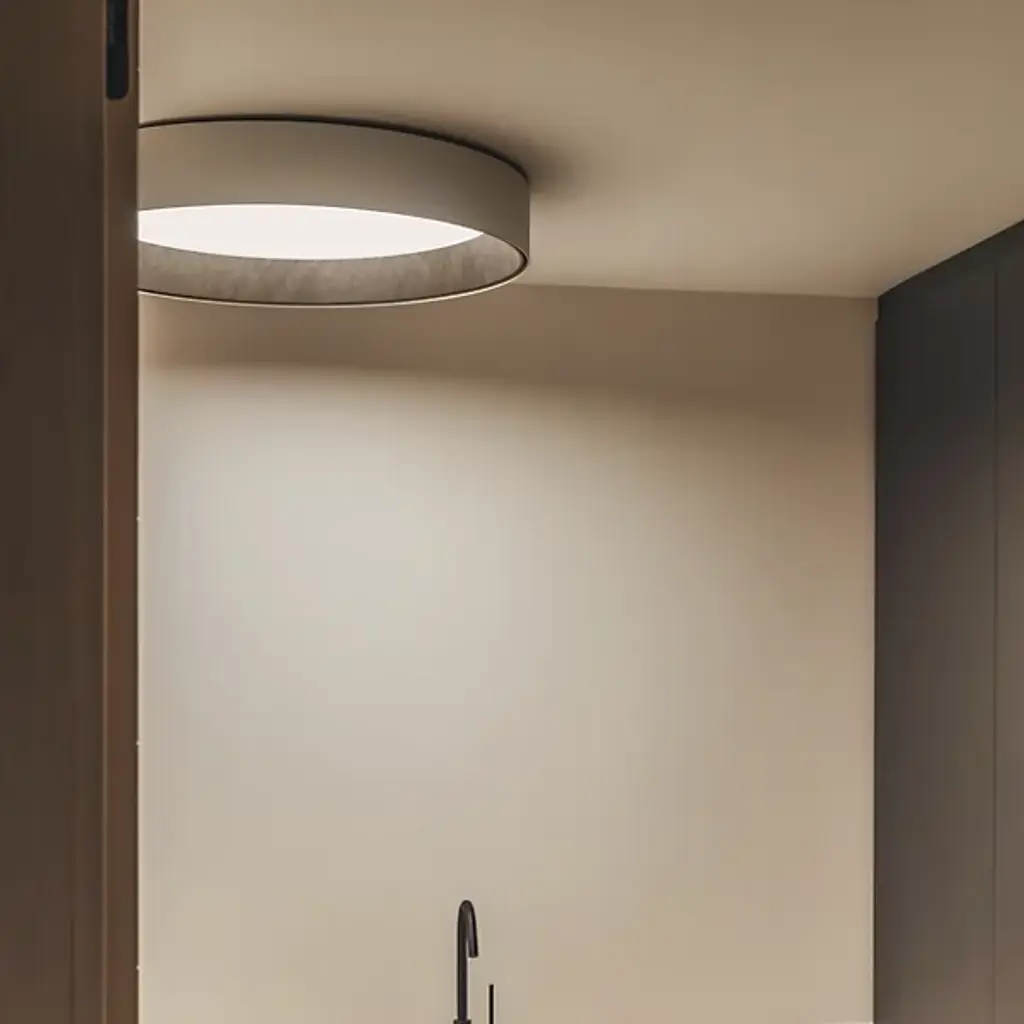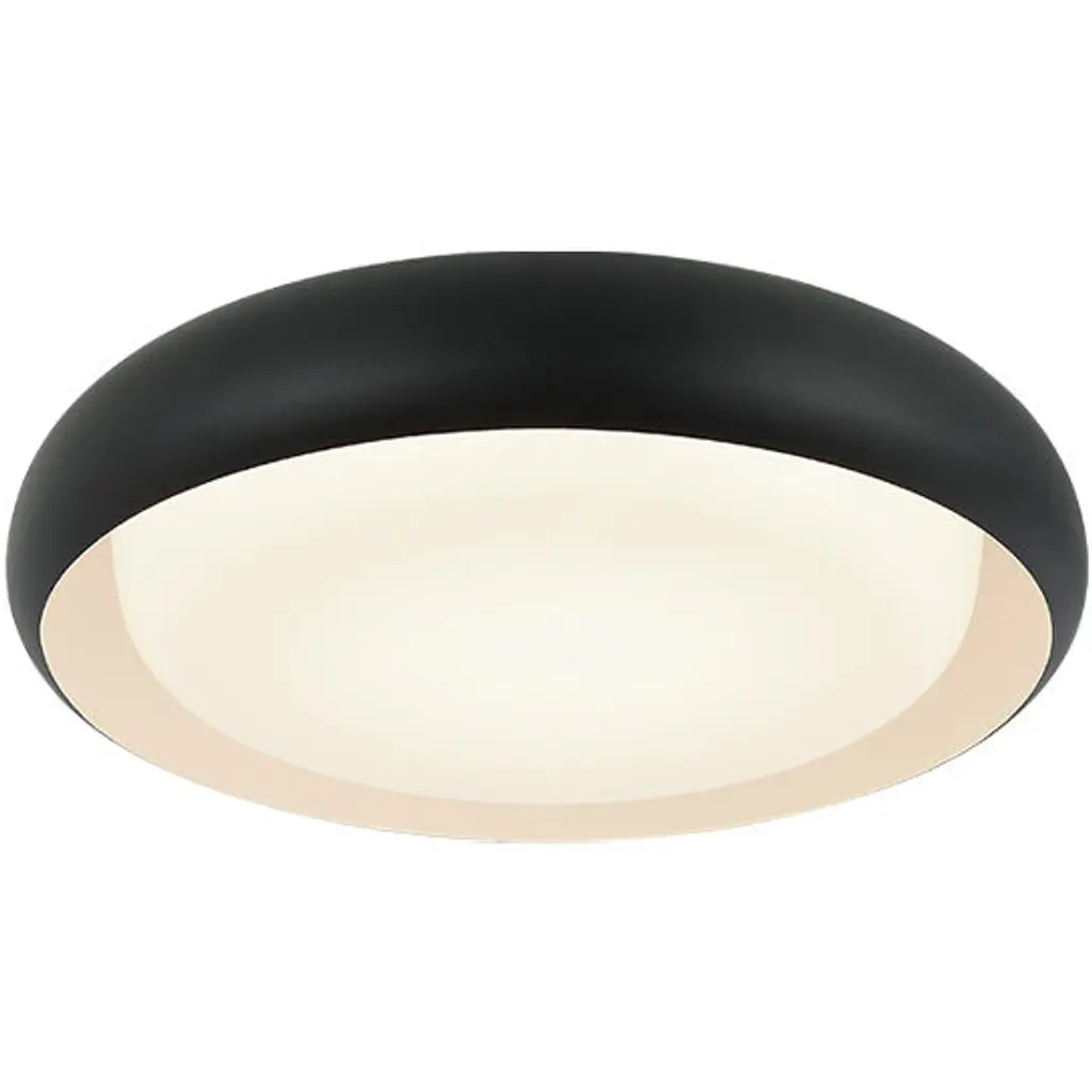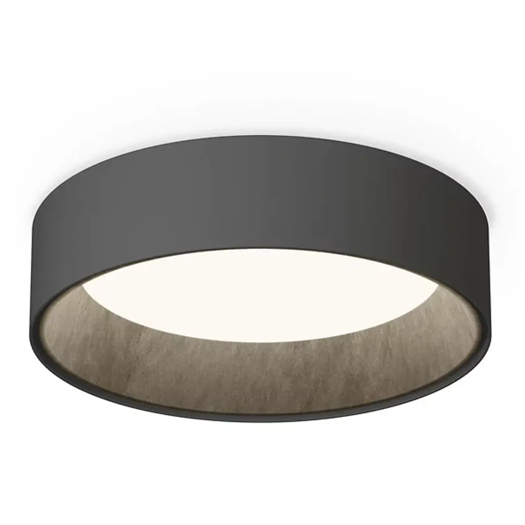 The Duo Petra Surface LED Flushmount from Vibia offers a smooth contemporary presentation. Designed by Ramos & Bassols, the round shape soothes any interior setting, contrasting an inner slate lining with an outer metal ring. A satin diffuser sits inside the ring, transforming the bright glare from the integrated LED into a pleasing, even glow. The natural interior texture contrasts well with the smooth simplicity of its shape, while the inset diffuser adds reflected light to the soft column of downlight that washes out below the fixture.