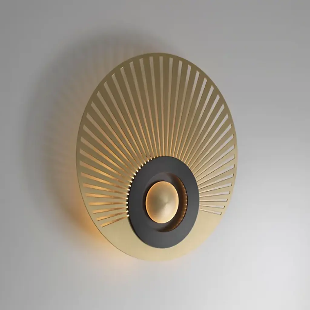 Like the sun peeking through the horizon, the Earth Radian LED Wall / Flushmount from CVL Luminaires brightens up your day with Art Deco flair. The piece combines designer Émilie Cathelineau’s appreciation for Art Deco and contemporary styling with the skill of French artisans. These artisans finely cut into a solid brass plate a sleek linear pattern of rays. The rays lead the eyes to the circles. These circles charm in their familiar sun-like character as they outline the LEDs sitting behind. While stunning with the lights off, the piece captivates as diffused LED light paints the wall a warm hue. This ambient glow penetrates through the ray pattern for a dramatic silhouette.