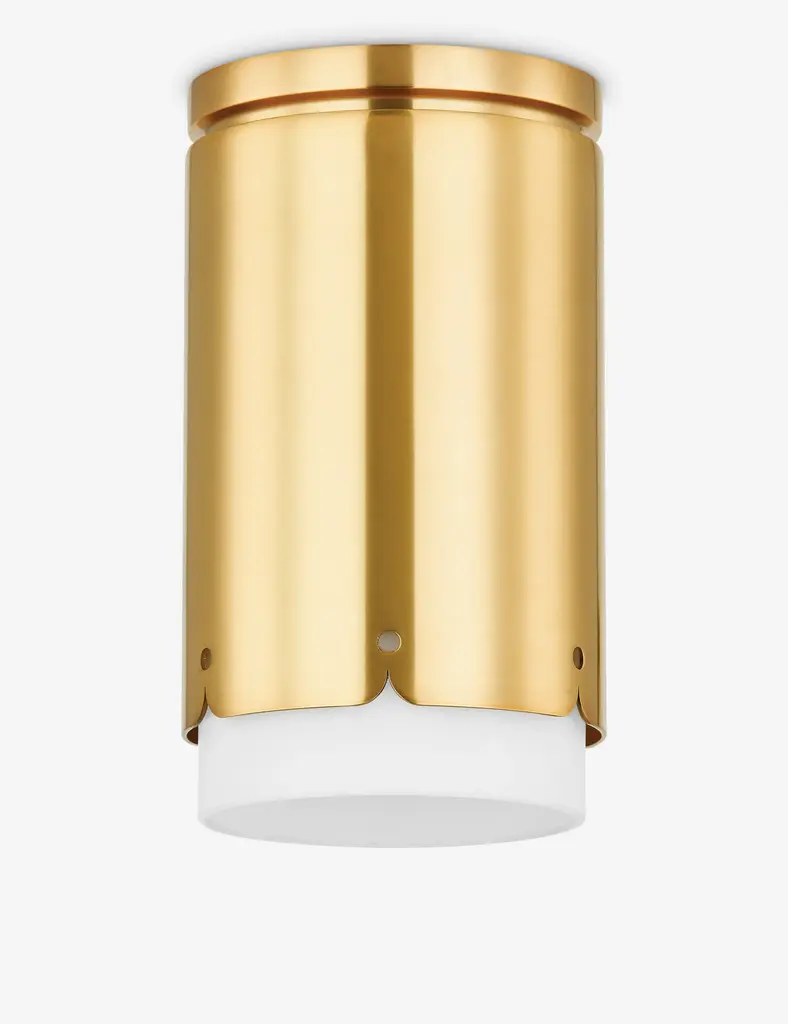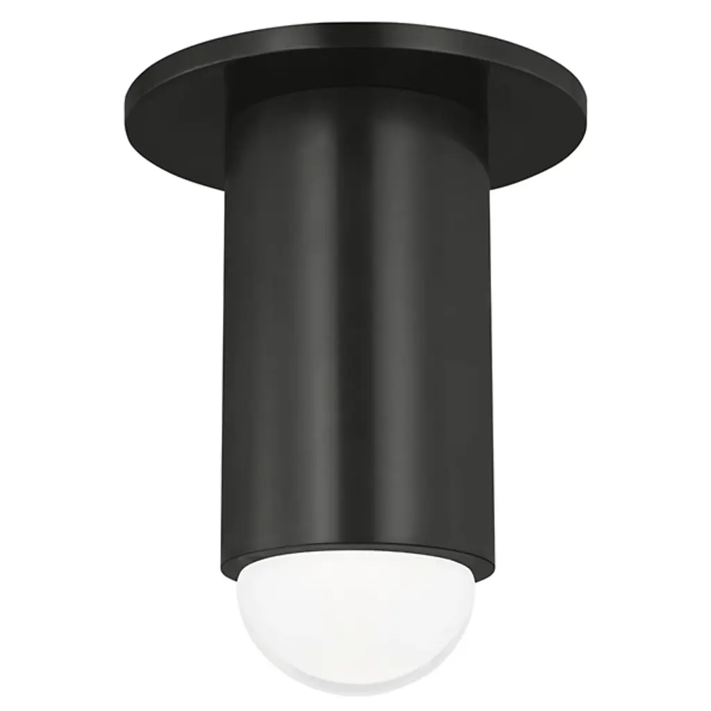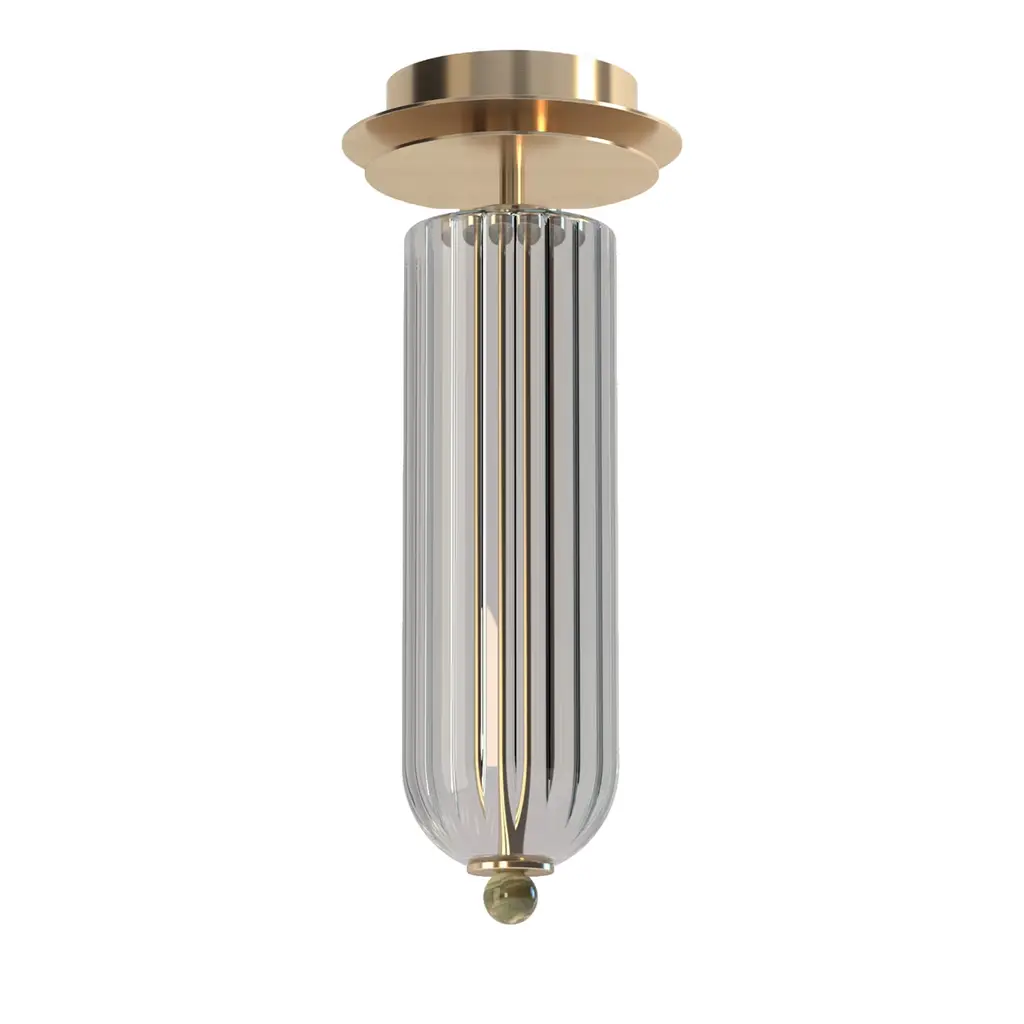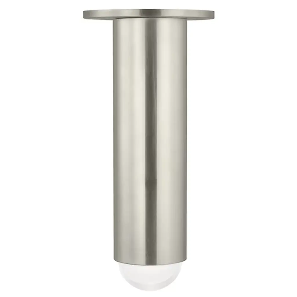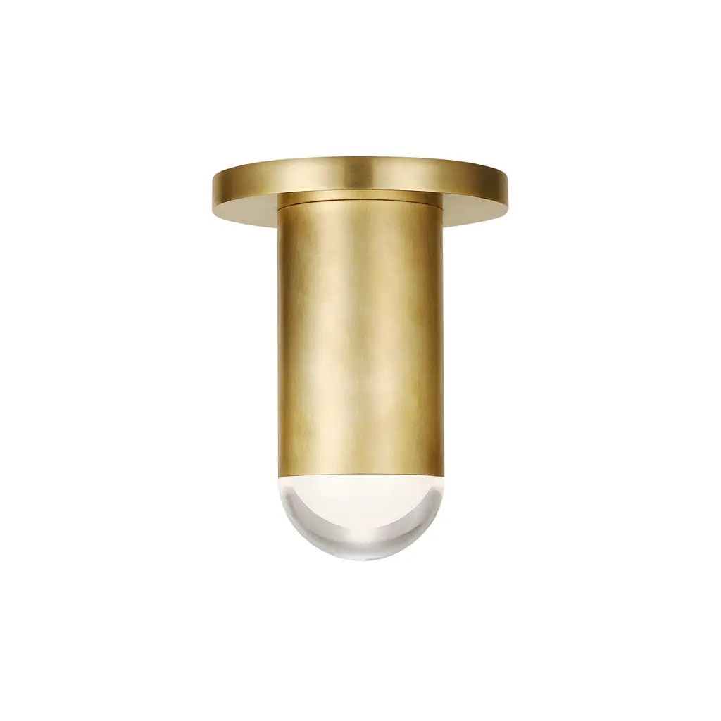 The Ebell Medium Flushmount by Kelly Wearstler for Visual Comfort Modern is the evolution of the mono-point through an imaginative modern lens. A multi-dimensional domed glass prism is set into a pure metal body. The concentrated warm LED within the glass interior emits a state-of-the-art expression of light in this illuminating departure from the expected.