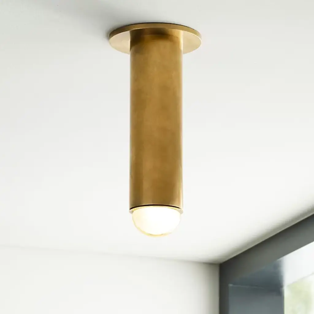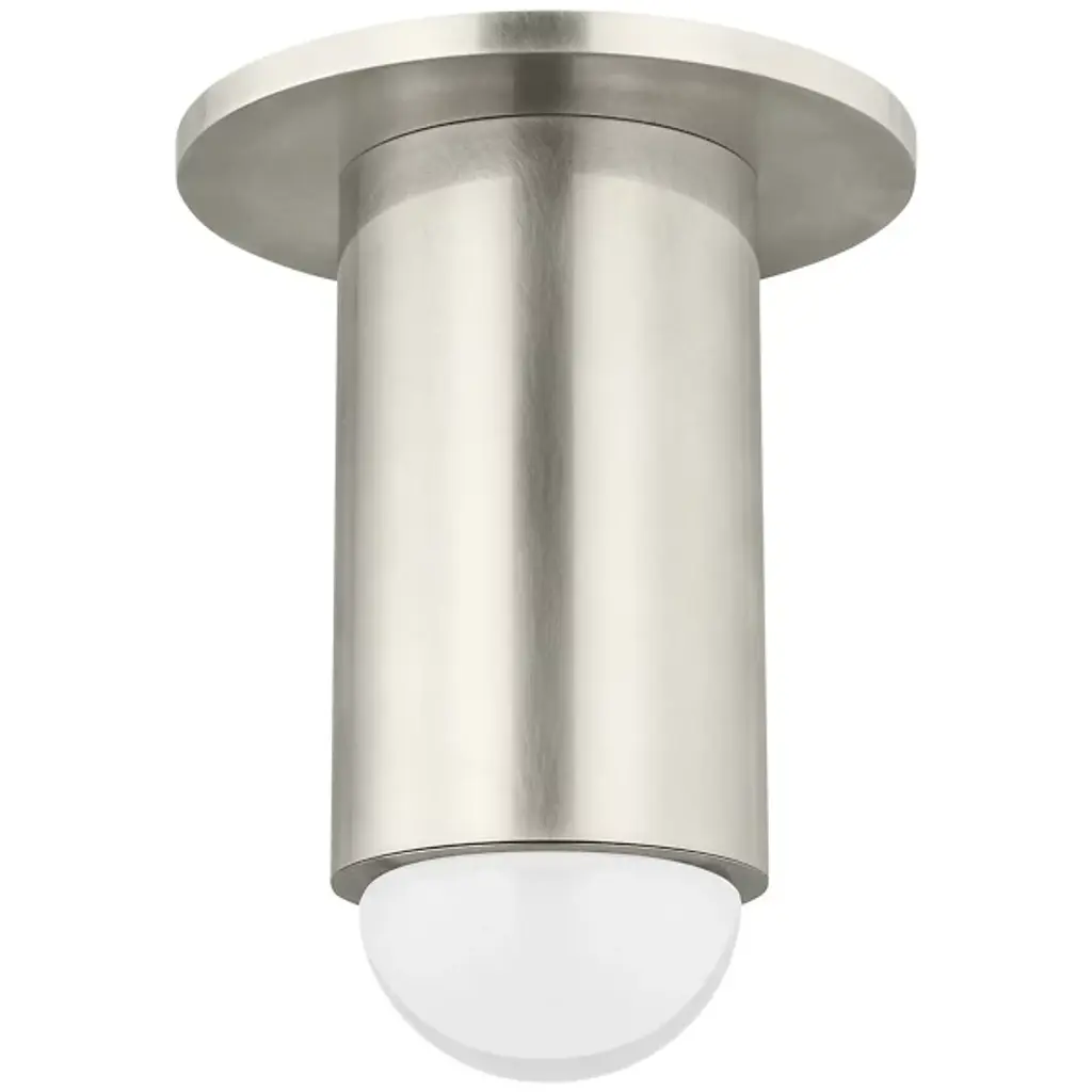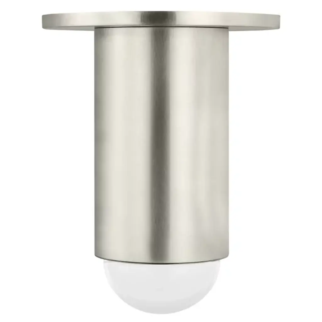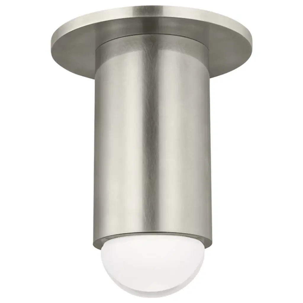The Ebell Medium Flushmount by Kelly Wearstler for Visual Comfort Modern is the evolution of the mono-point through an imaginative modern lens. A multi-dimensional domed glass prism is set into a pure metal body. The concentrated warm LED within the glass interior emits a state-of-the-art expression of light in this illuminating departure from the expected.