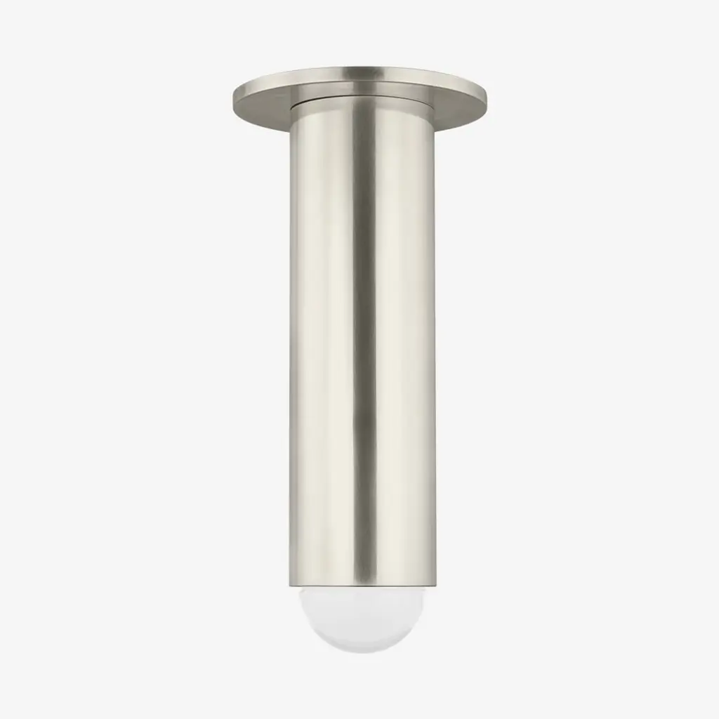 The Ebell Medium Flush Mount by Kelly Wearstler for Tech Lighting explores the evolution of the monopoint through an imaginative modern lens. Multi-dimensional domed glass prism is set into pure cylindrical metal body. The concentrated warm LED within the frosted glass interior emits a state-of-the-art expression of light in this illuminating departure from the expected. International Orders: Lead times and availability vary for non-US 120V fixtures. Please contact us for all international inquiries.