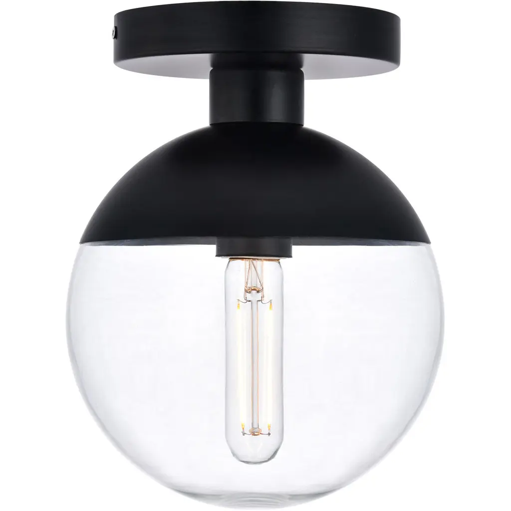 Refined style with a practical design, Eclipse flush mount bring cosmopolitan sophistication anywhere, especially to an entryway, office, bathroom, bedroom, or kitchen. The smooth iron frame features a disk-shaped canopy and comes in a black finish. A touch of color on top of the clear spherical glass shade brings character to this classic style. Living in the big city has never been this easy.