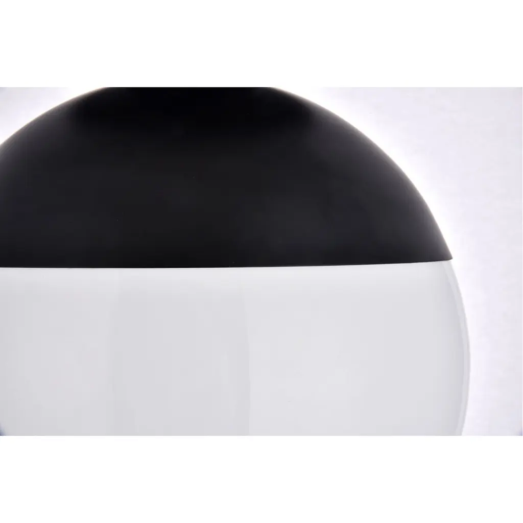 Refined style with a practical design, Eclipse flush mount bring cosmopolitan sophistication anywhere, especially to an entryway, office, bathroom, bedroom, or kitchen. The smooth iron frame features a disk-shaped canopy and comes in a black finish. A touch of color on top of the frosted white spherical glass shade brings character to this classic style. Living in the big city has never been this easy.