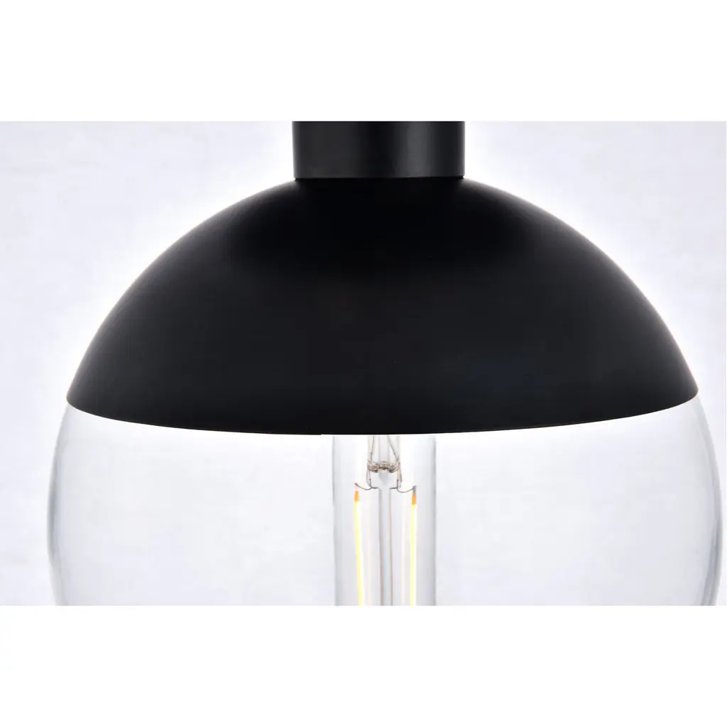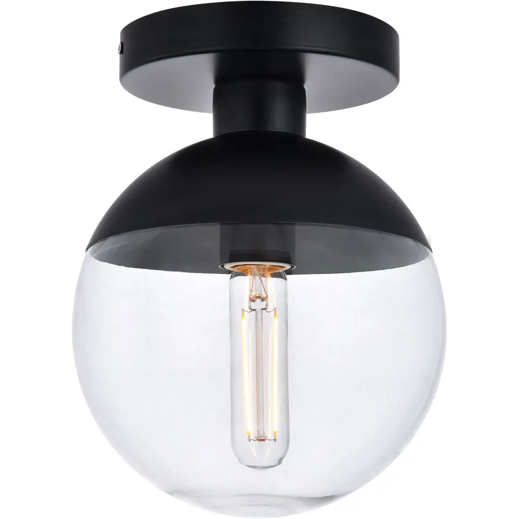 Refined style with a practical design, Eclipse flush mount bring cosmopolitan sophistication anywhere, especially to an entryway, office, bathroom, bedroom, or kitchen. The smooth iron frame features a disk-shaped canopy and comes in a black finish. A touch of color on top of the clear spherical glass shade brings character to this classic style. Living in the big city has never been this easy.