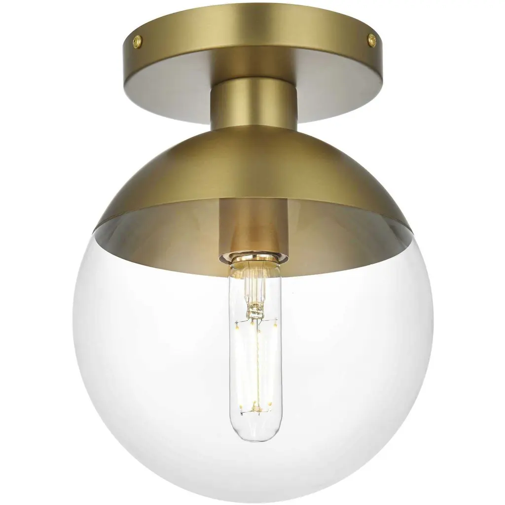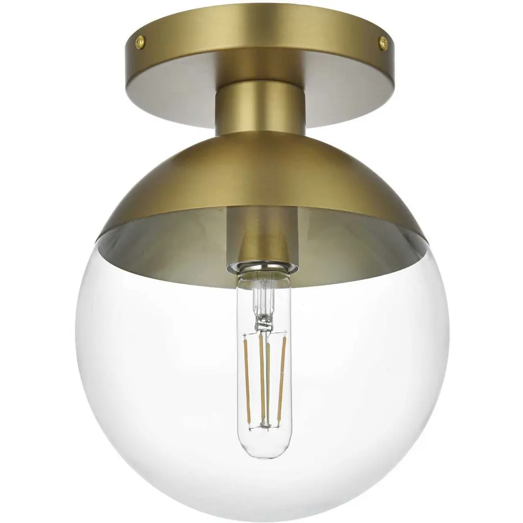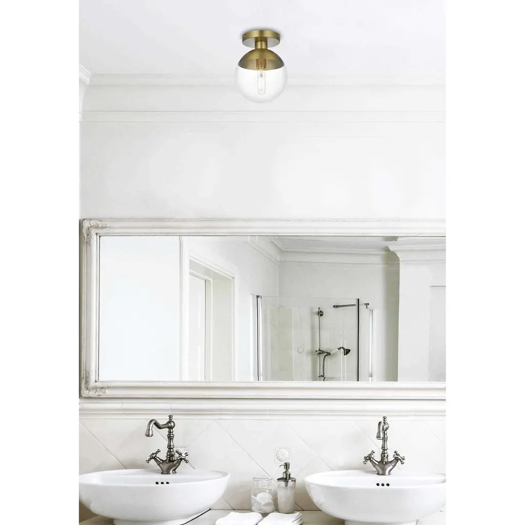 Refined style with a practical design, Eclipse flush mount bring cosmopolitan sophistication anywhere, especially to an entryway, office, bathroom, bedroom, or kitchen. The smooth iron frame features a disk-shaped canopy and comes in a satin gold or chrome finish. A touch of color on top of the clear or frosted white spherical glass shade brings character to this classic style. Living in the big city has never been this easy.