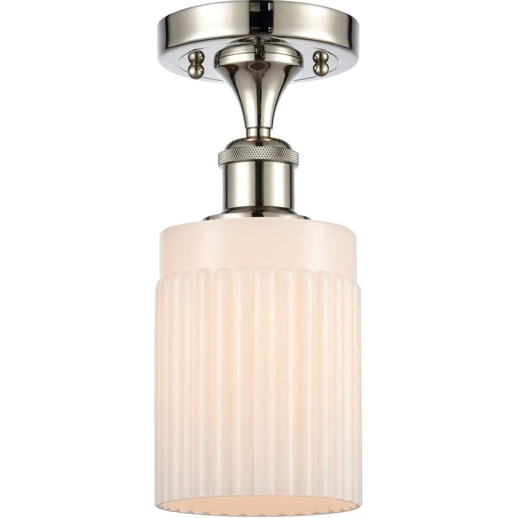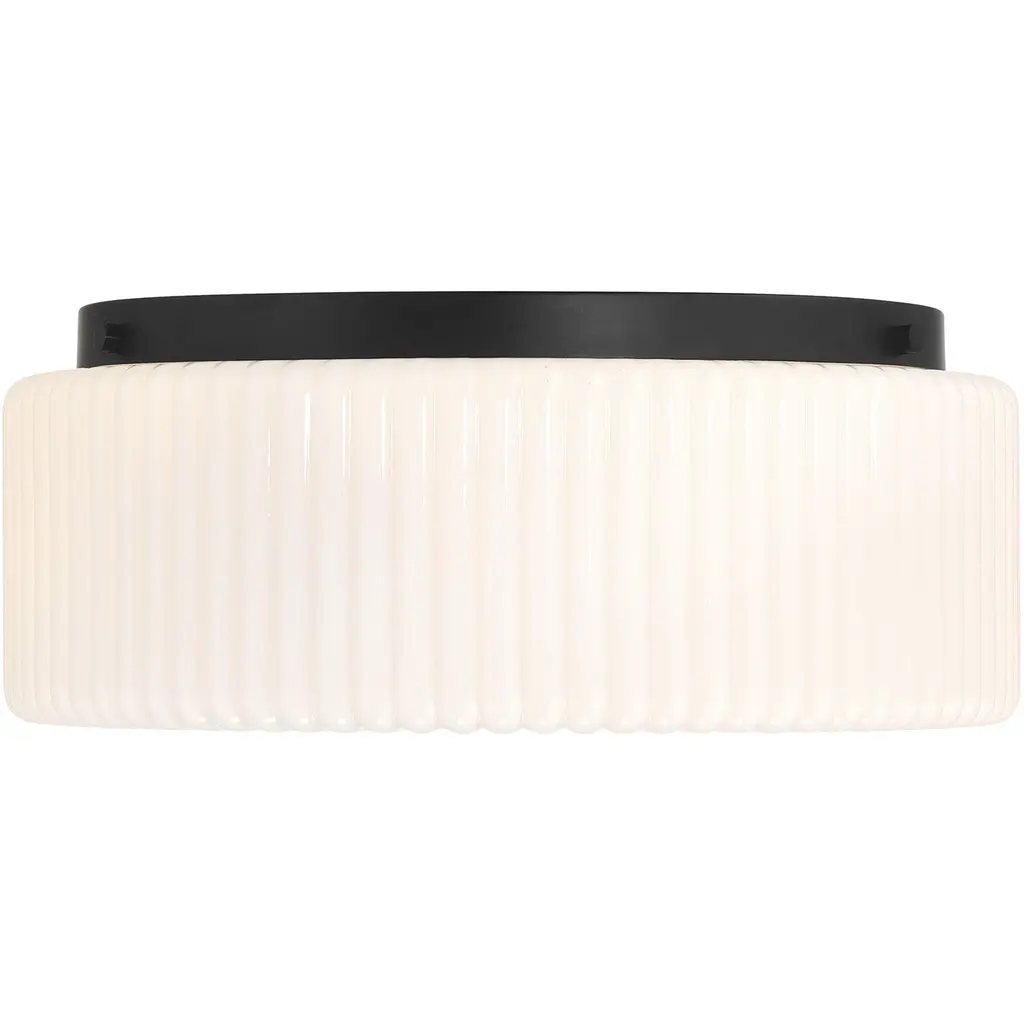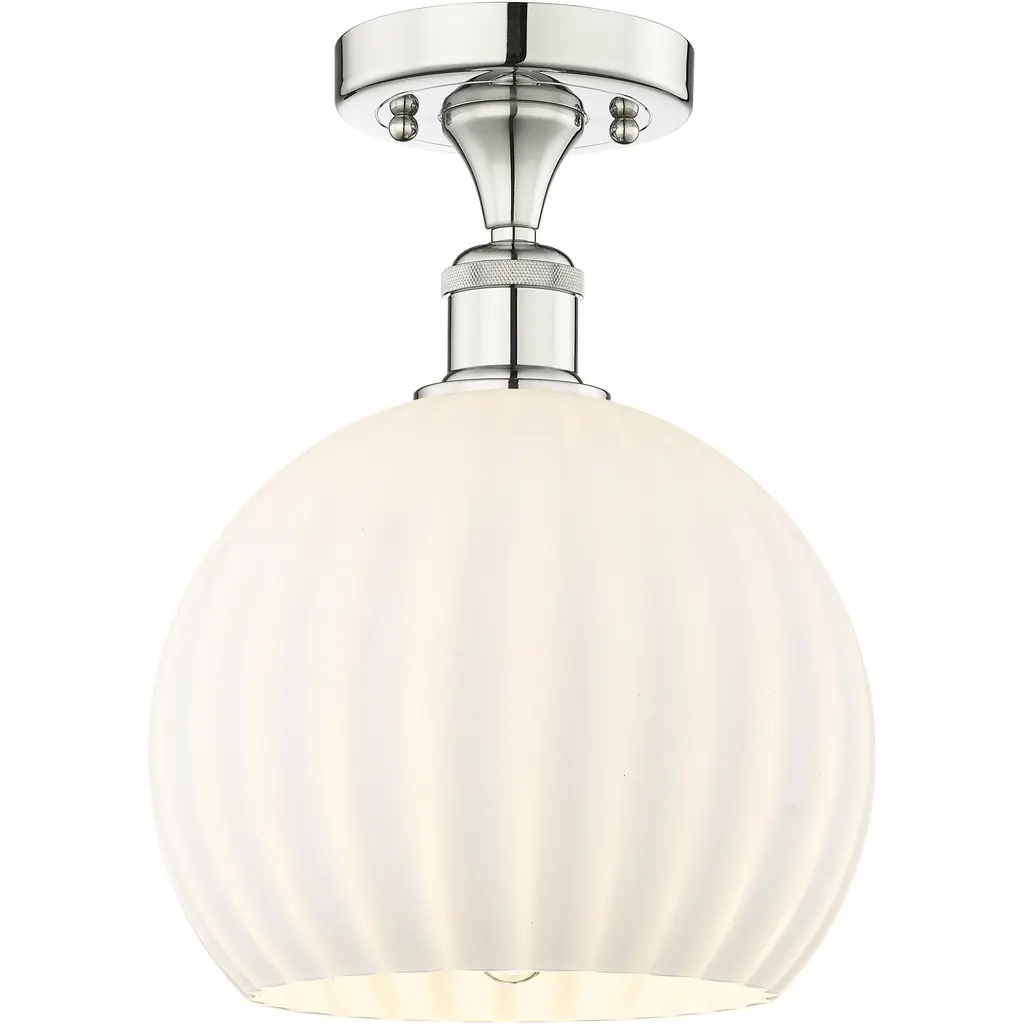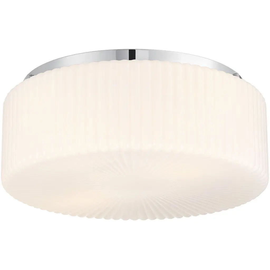 Use the vintage-inspired Savoy House Edgemont 4-light flush mount to add beautiful, vivid brightness to any room The ribbed shade of strie glass brings in a big dose of eye-catching texture and the Chrome finish is extremely versatile. Edgemont is 8" in height and 20" in width, making it an excellent option for larger spaces. It uses four standard size bulbs of up to 60 watts per bulb. Bulbs not included.