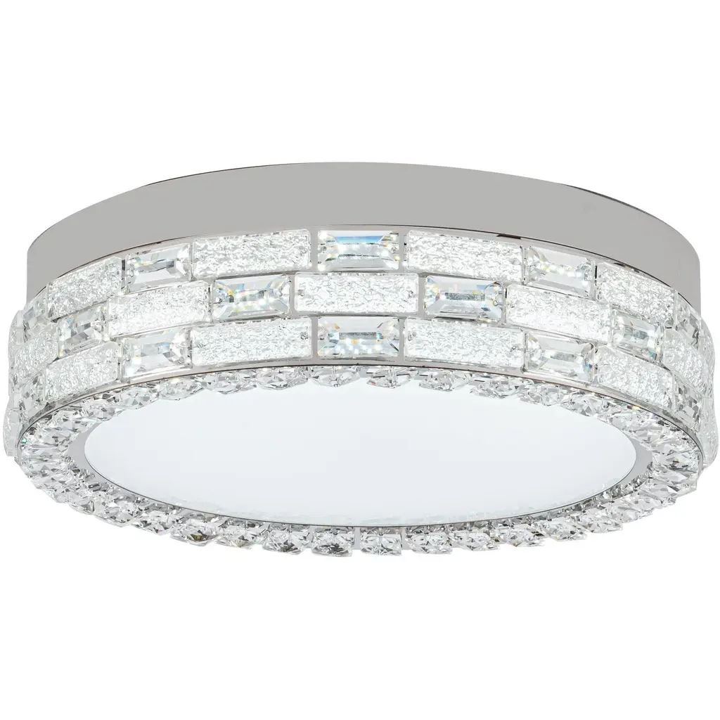 Glistening like a crown of starlight, this LED crystal flushmount from the Elegance collection offers a breathtaking harmony of luxury and functionality. Its polished nickel frame embraces a dazzling array of crystals, while the 3CCT switch allows you to tailor the ambiance with warm, neutral, or cool light (3K, 4K, 5K). This model has a glass bottom lens.