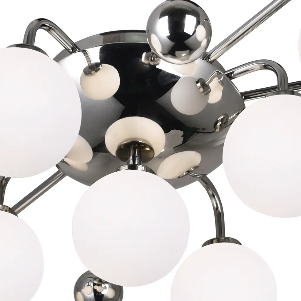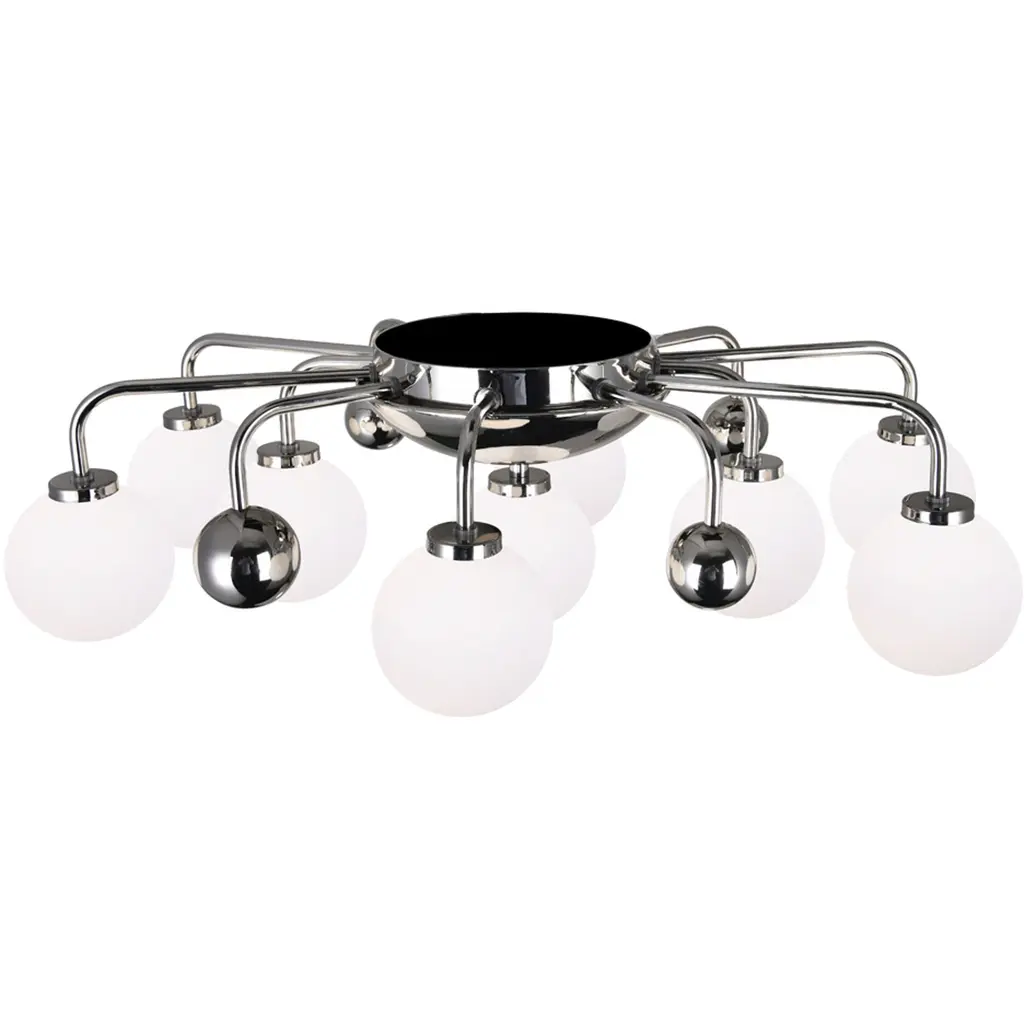 Taking up less ceiling space and height but delivering ample illumination and style, the Element 9 Light Flush Mount is the perfect Sputnik lighting for a small to medium-sized space. Packed with enough detail to add flair to a room without overwhelming the space, this polished nickel luminaire is ready to amp up the ambiance in your home and give it a chic sense of mid-century contemporaneity.