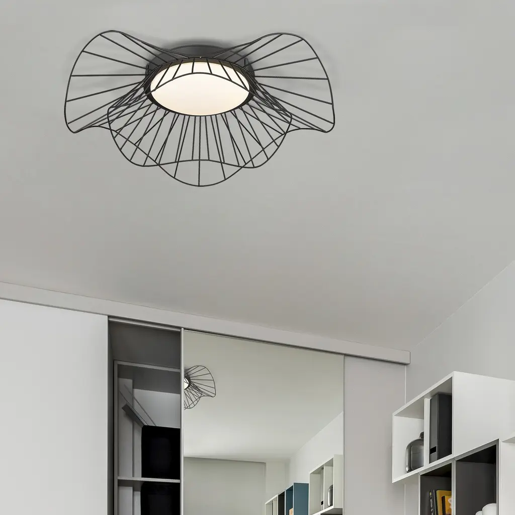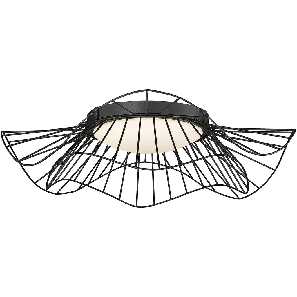 Bring modern elegance into your home with the Golden Lighting Elena Integrated LED Flush Mount in Natural Black. Featuring an opal glass shade and a natural black frame, it creates a welcoming atmosphere. The opal glass shade features a milky, translucent finish that diffuses light evenly, ensuring a soft, glare-free glow. Our natural black finish offers a softer, organic take on a classic, with its matte surface and tactile, grounded feel. Ideal for low ceilings in hallways or bathrooms, this fixture is Damp Location Rated, making it suitable for areas with occasional moisture. With overall dimensions of 24"W x 6.25"H and integrated LED technology providing 960 rated lumens at a warm 3000K color temperature, it elevates your space with energy-efficient illumination. The Golden Lighting quality ensures this fixture is more than just lightingit's a statement piece for your home.
