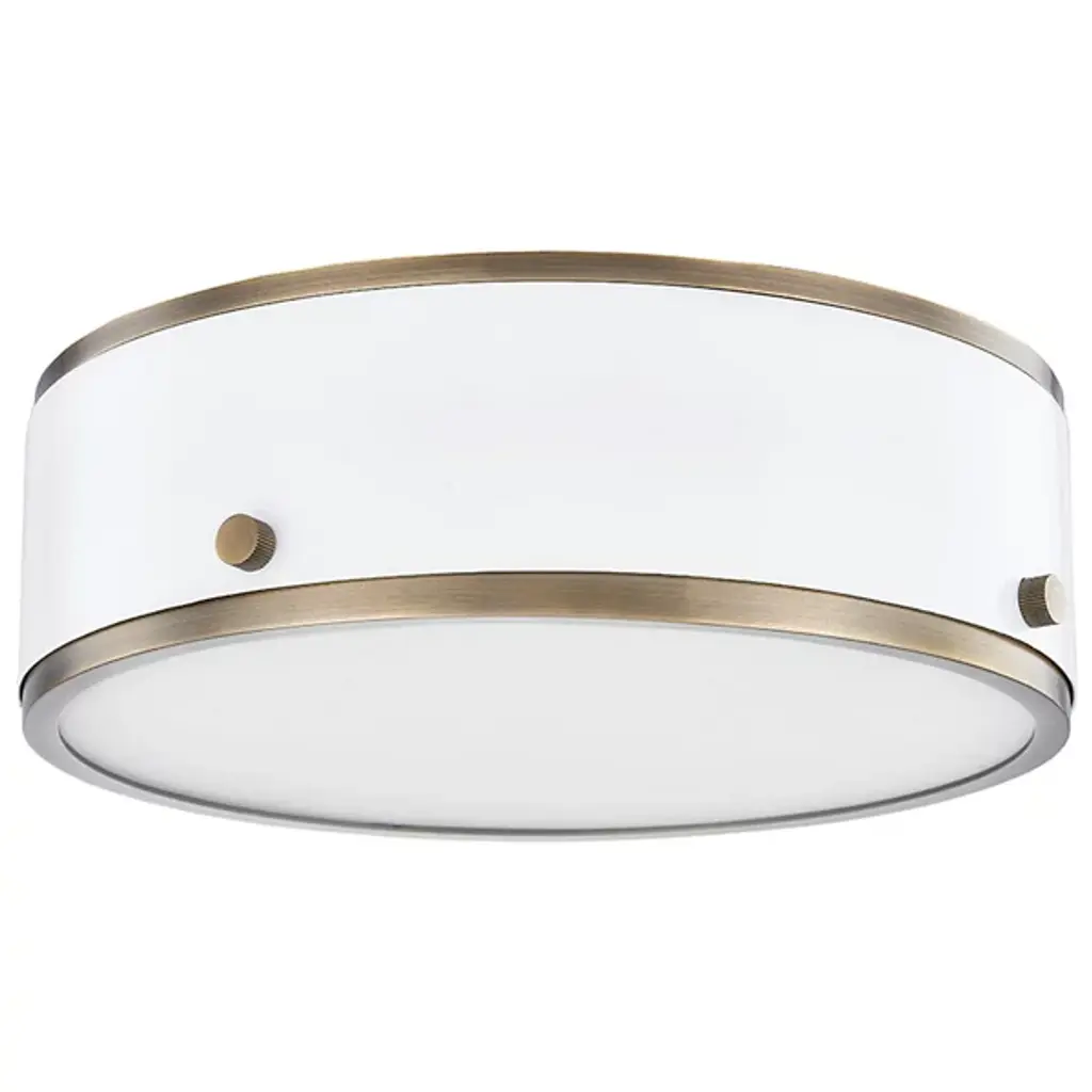 Give your living space a contemporary look with the Eli LED Flushmount by Troy Lighting. Eli is distinctive and functional. A flushmount is surrounded by a ring of metal and is adorned with matching decorative round knobs, creating a beautiful two-tone effect. LED light flows through the etched glass diffuser for a soft, clean glow.