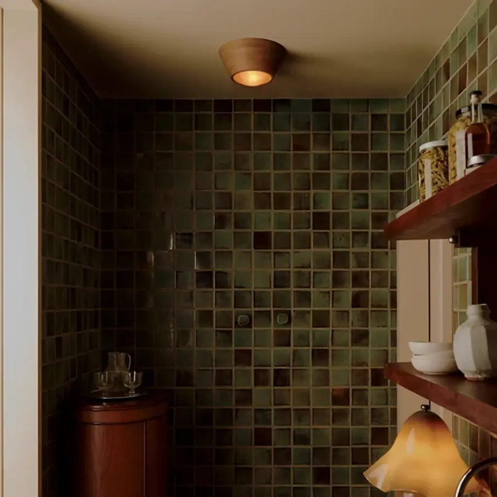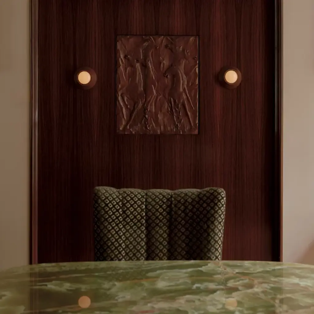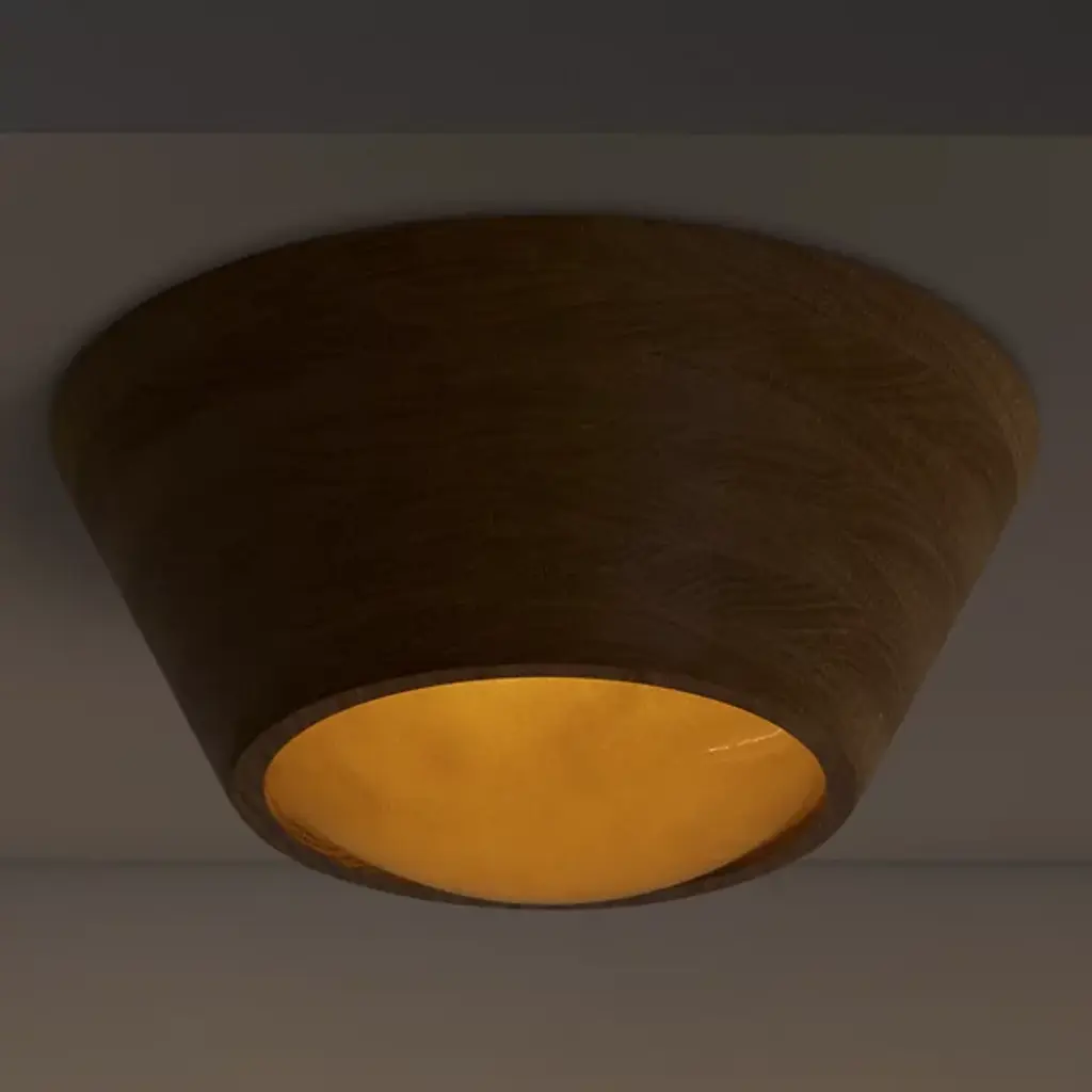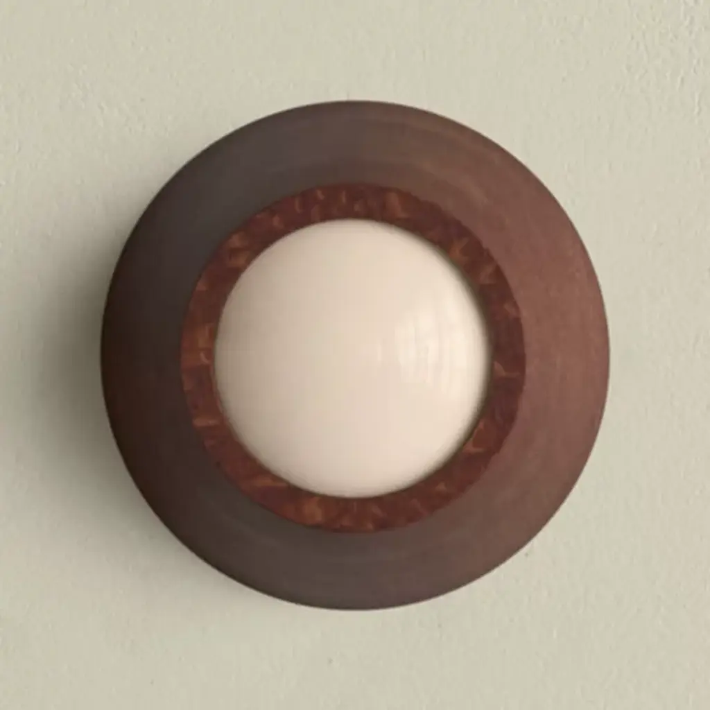 The Elio LED Wall / Flushmount from In Common With provides a smooth, artisan appeal to walls or ceilings. Its solid wood construction shows off simple shapes refined through careful craft, and features a smooth surface with a beveled edge, flaring out and around inner LED lamping rated for damp conditions. A domed glass diffuser made using experimental artistry sits inside the central opening, transforming bright light into a generous glow that warms the rich wood around it.