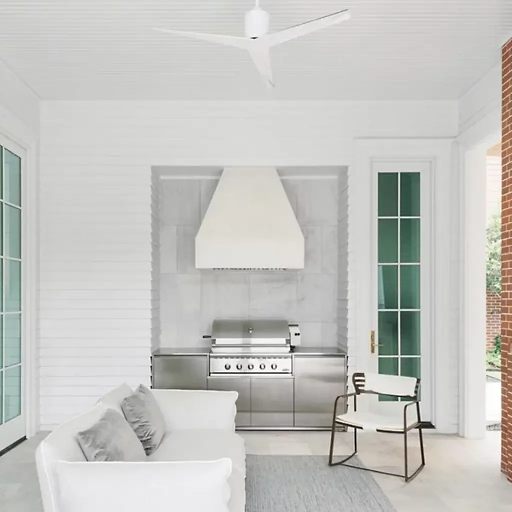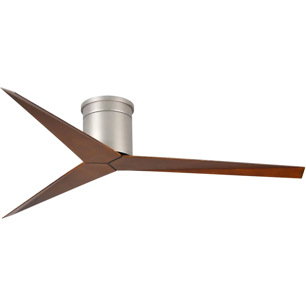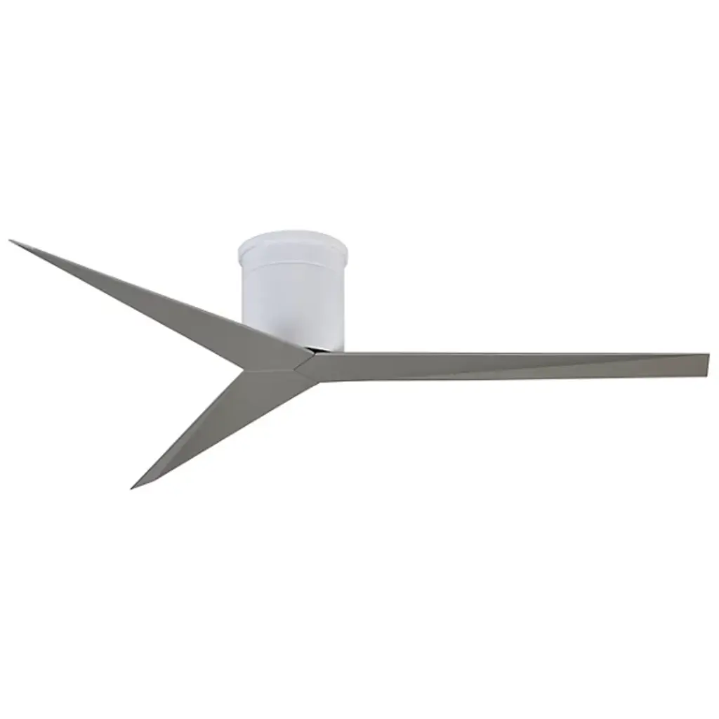 A relative of the Eliza Ceiling Fan, the Atlas by Matthews Fan Co. now presents its rodless companion: the Eliza-H Flushmount Ceiling Fan. As a close-to-ceiling flushmount fan, the Eliza-H features a powerful 8-inch body that carries an ultra-quiet DC motor and a 56-inch blade span. Its blade shape maximizes air flow at the outer edge, allowing the fan to work with highly efficient air velocity and less blade drag. With its sleek style and technical form, the Eliza-H Flushmount Ceiling Fan combines modern utility with industrial beauty.