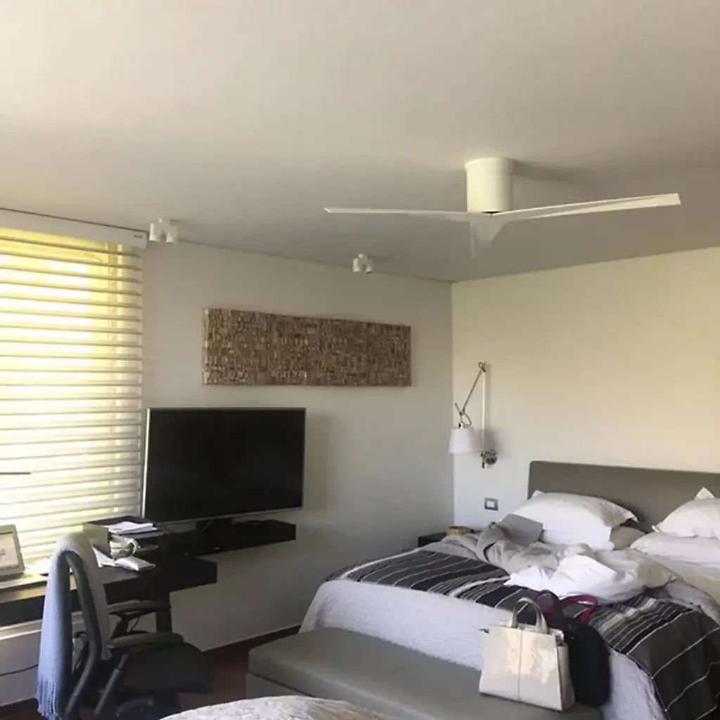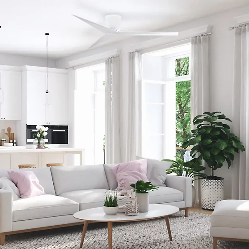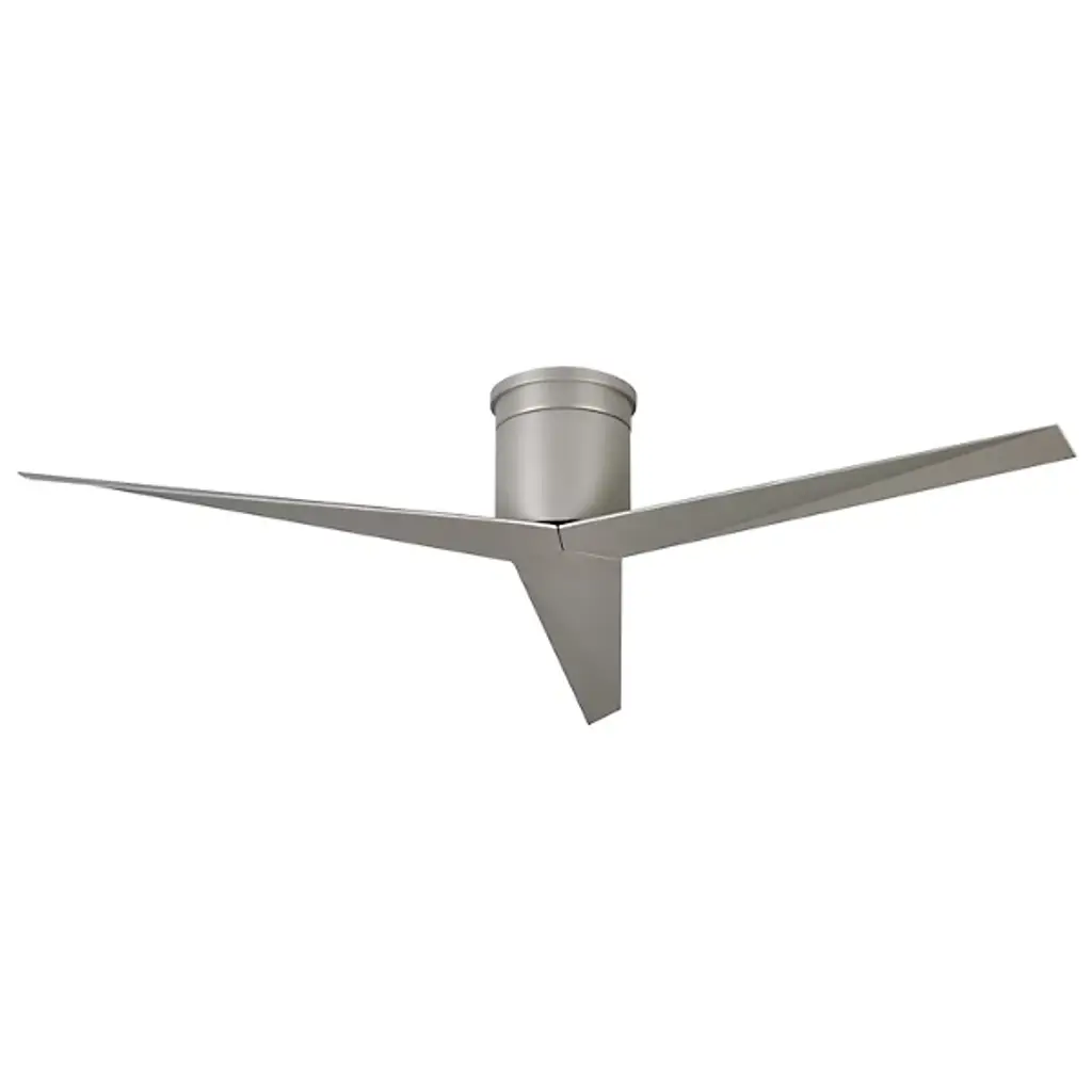 A relative of the Eliza Ceiling Fan, the Atlas by Matthews Fan Co. now presents its rodless companion: the Eliza-H Flushmount Ceiling Fan. As a close-to-ceiling flushmount fan, the Eliza-H features a powerful 8-inch body that carries an ultra-quiet DC motor and a 56-inch blade span. Its blade shape maximizes air flow at the outer edge, allowing the fan to work with highly efficient air velocity and less blade drag. With its sleek style and technical form, the Eliza-H Flushmount Ceiling Fan combines modern utility with industrial beauty.